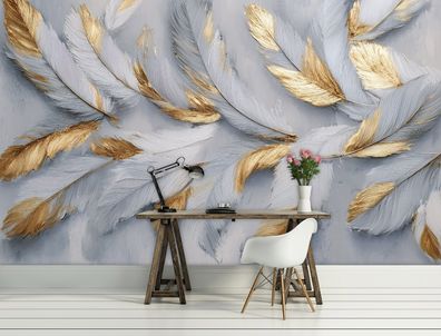 Vlies Fototapete Federn Weiß Gold TAPETE XXL Wohnzimmer Schlafzimmer
