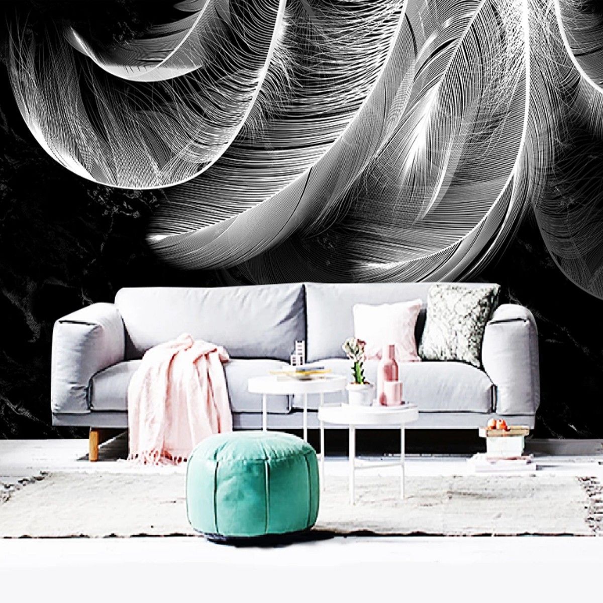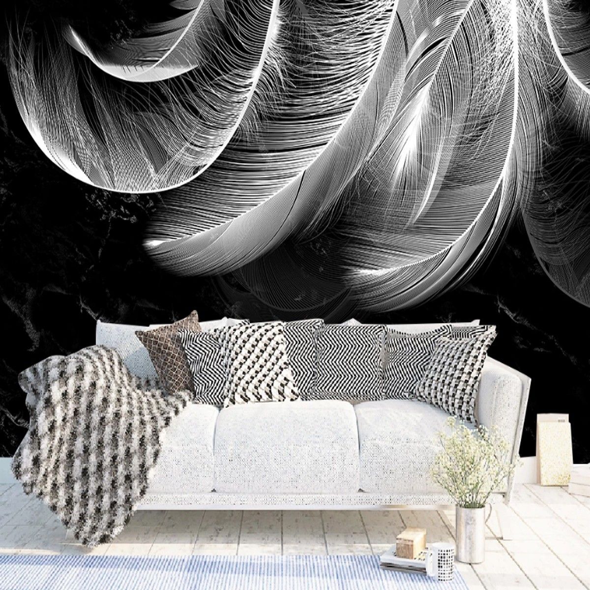 Fototapete Schwarz Gold Federn Wanddeko Wohnzimmer Schlafzimmer 10414