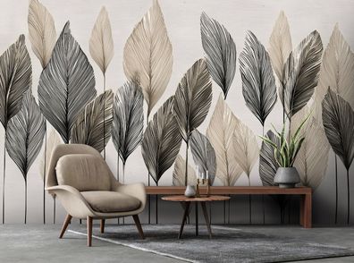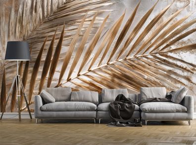 Vlies Fototapete Blätter Federn Beton Modern Gold TAPETE XXL Wohnzimmer Schlafzimmer