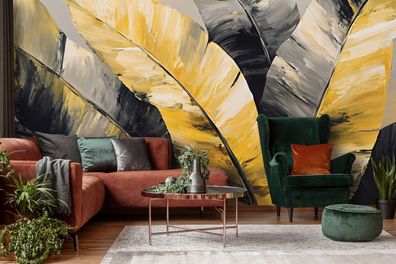 Vlies Fototapete Blätter Schwarz Gold Natur TAPETE XXL Wohnzimmer Schlafzimmer
