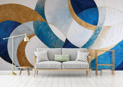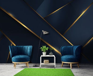 Vlies Fototapete Abstrakt Blau Gold Geometric TAPETE XXL Wohnzimmer Schlafzimmer