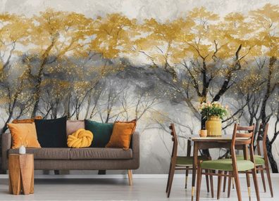 Vlies Fototapete Bäume Gold Schwarz Natur TAPETE XXL Wohnzimmer Schlafzimmer