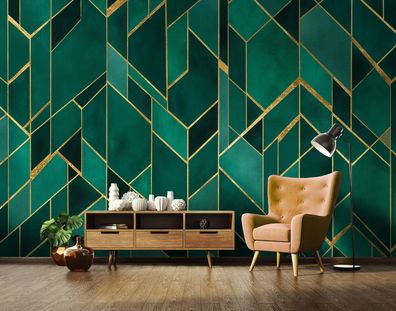 Vlies Fototapete Abstrakt Gold Grün TAPETE XXL Wohnzimmer Schlafzimmer