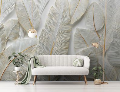Vlies Fototapete Blätter Weiß Gold TAPETE XXL Wohnzimmer Schlafzimmer