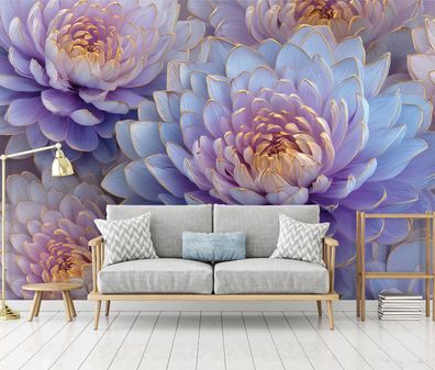 Vlies Fototapete Blumen Lila Weiß Gold TAPETE XXL Wohnzimmer Schlafzimmer