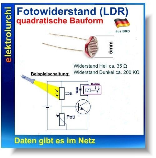 Fotowiderstand LDR 5mm. Hell=ca.5-10K (10Lux) Dunkel=ca.500K, Typ: GL5516, 4 St.