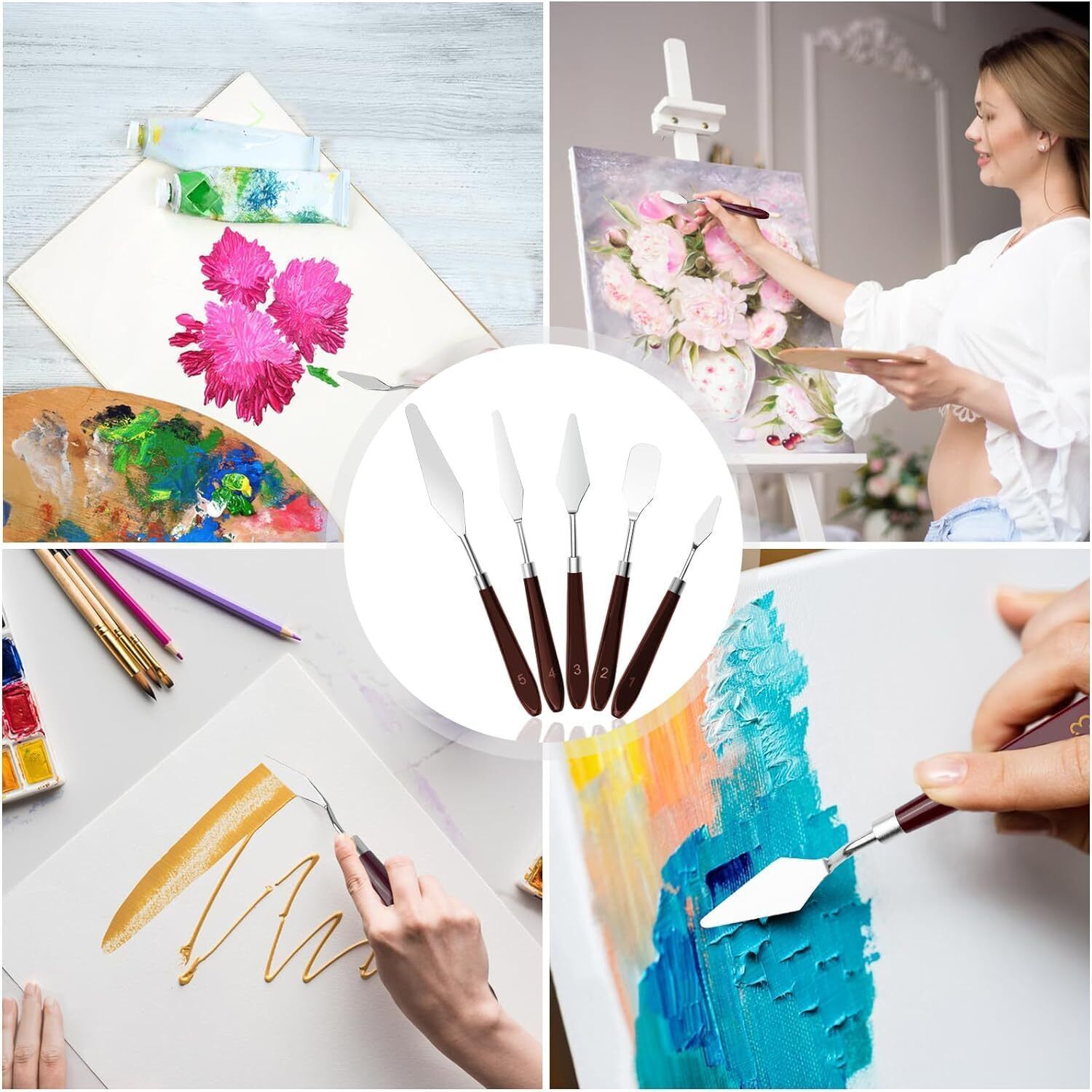 Fousenuk 5 Stécke Edelstahl Malmesser fér Acrylfarben Spachtel Acrylmalerei