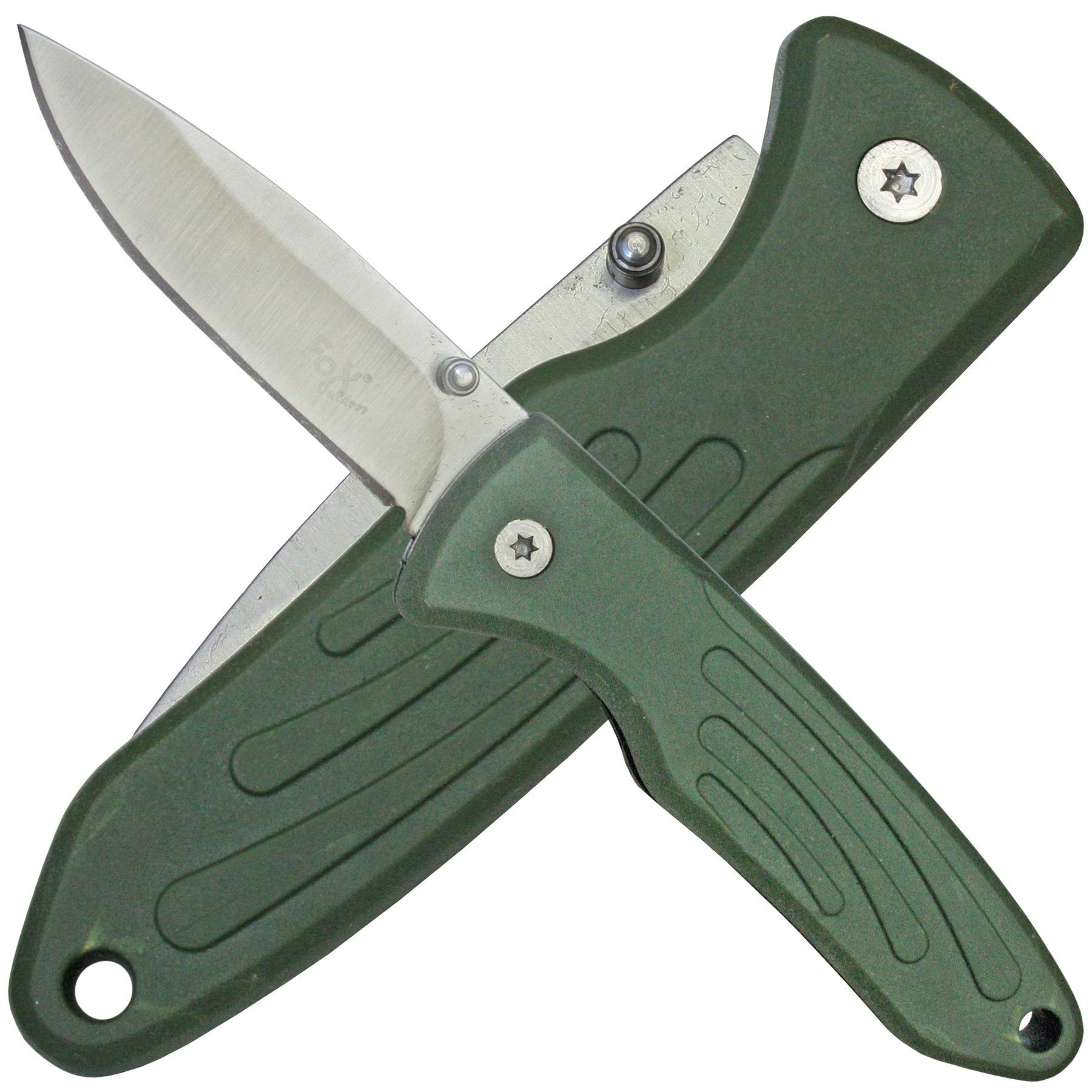 Fox Outdoor Fox Outdoor Einhandmesser Taschenmesser mit Daumenpin TPR-Griff oliv