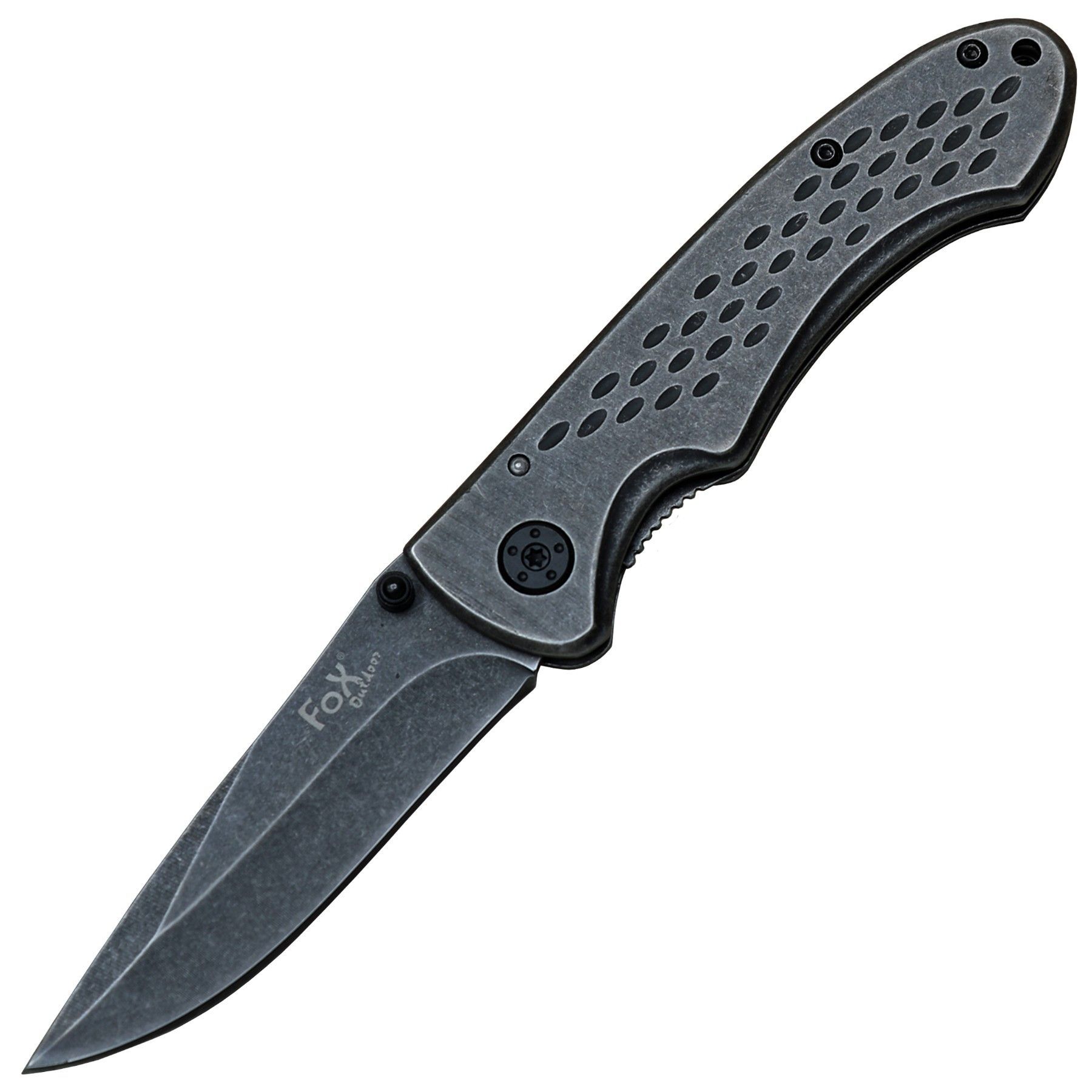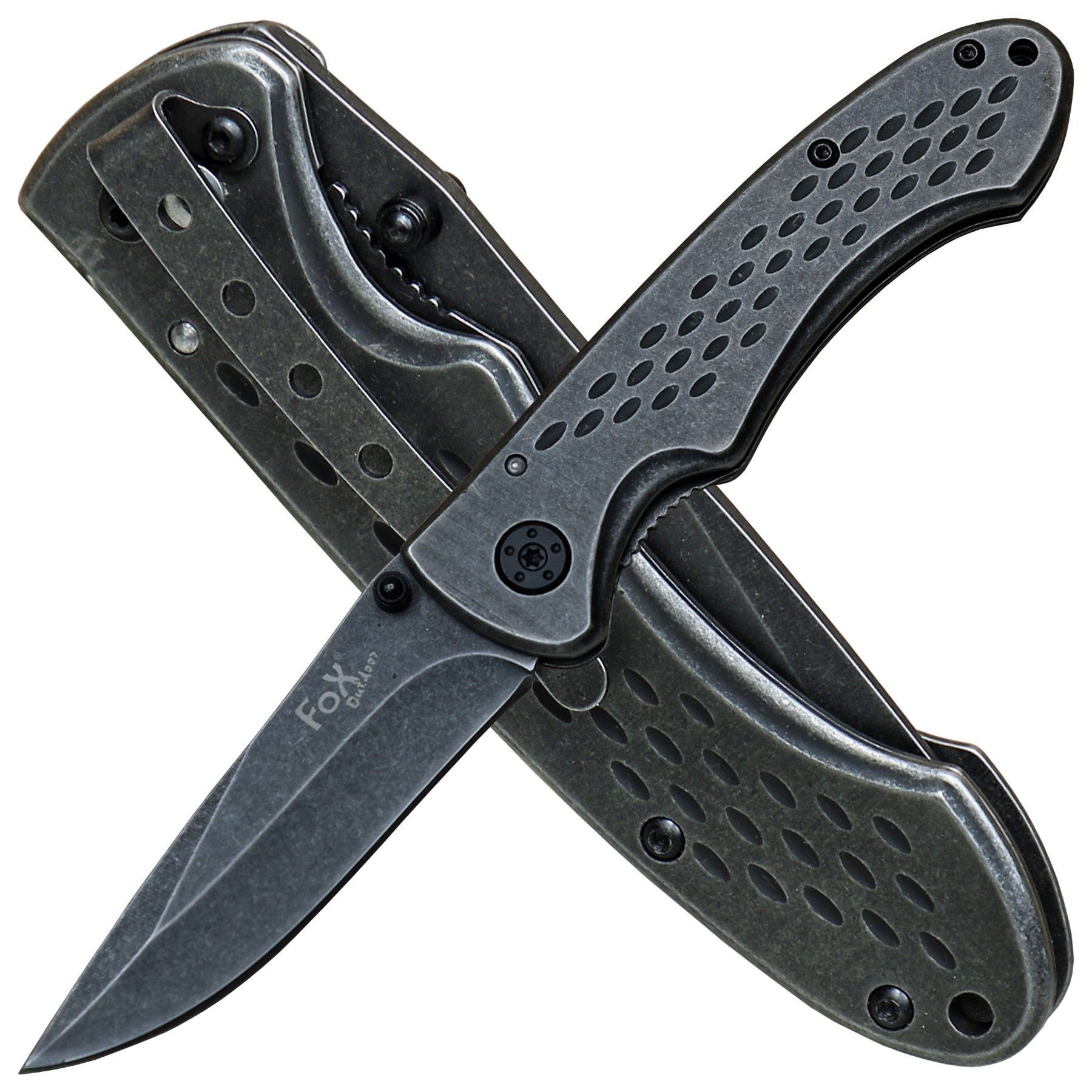 Fox Outdoor Fox Outdoor Einhandmesser Taschenmesser stonewashed Oberfläche mit Metallgriff
