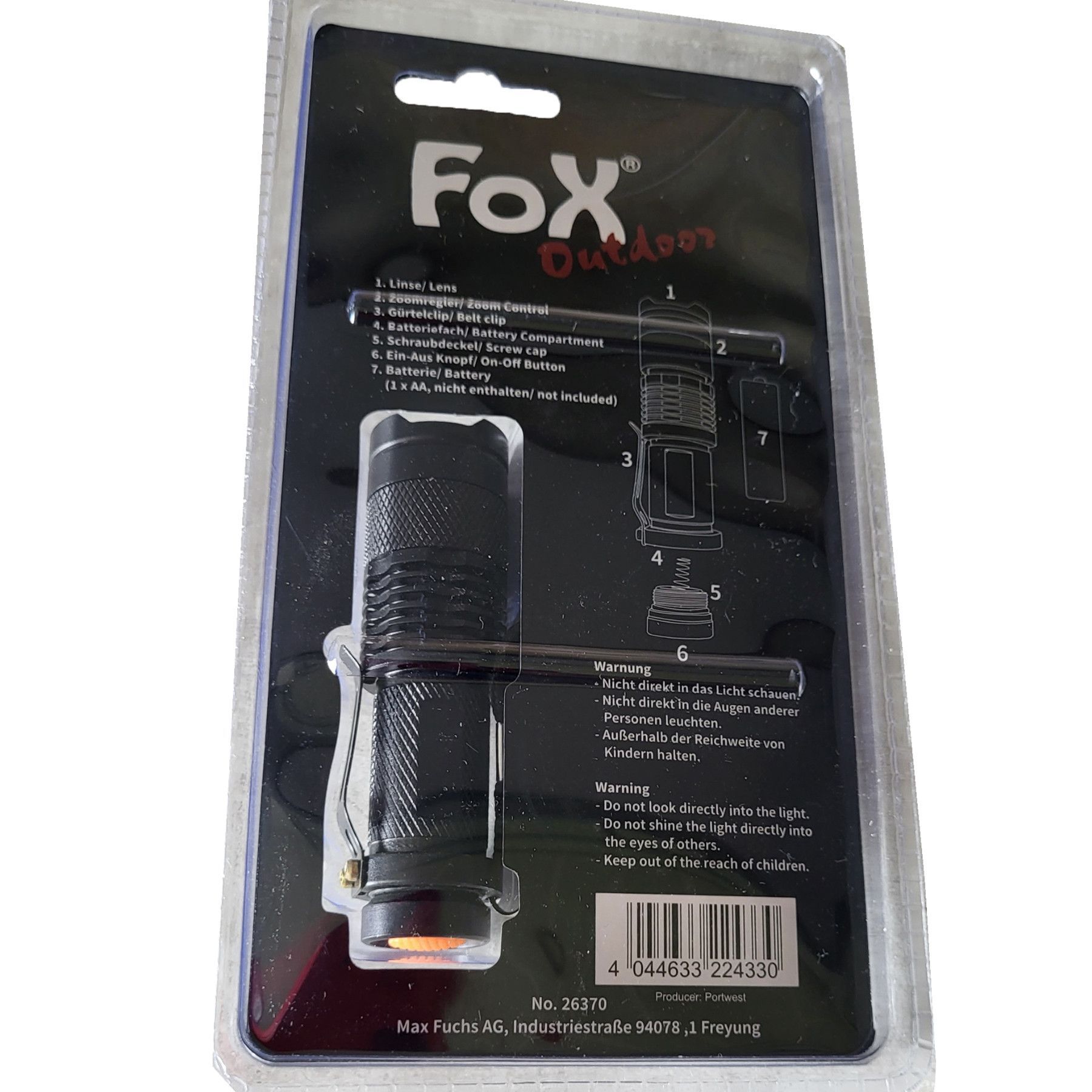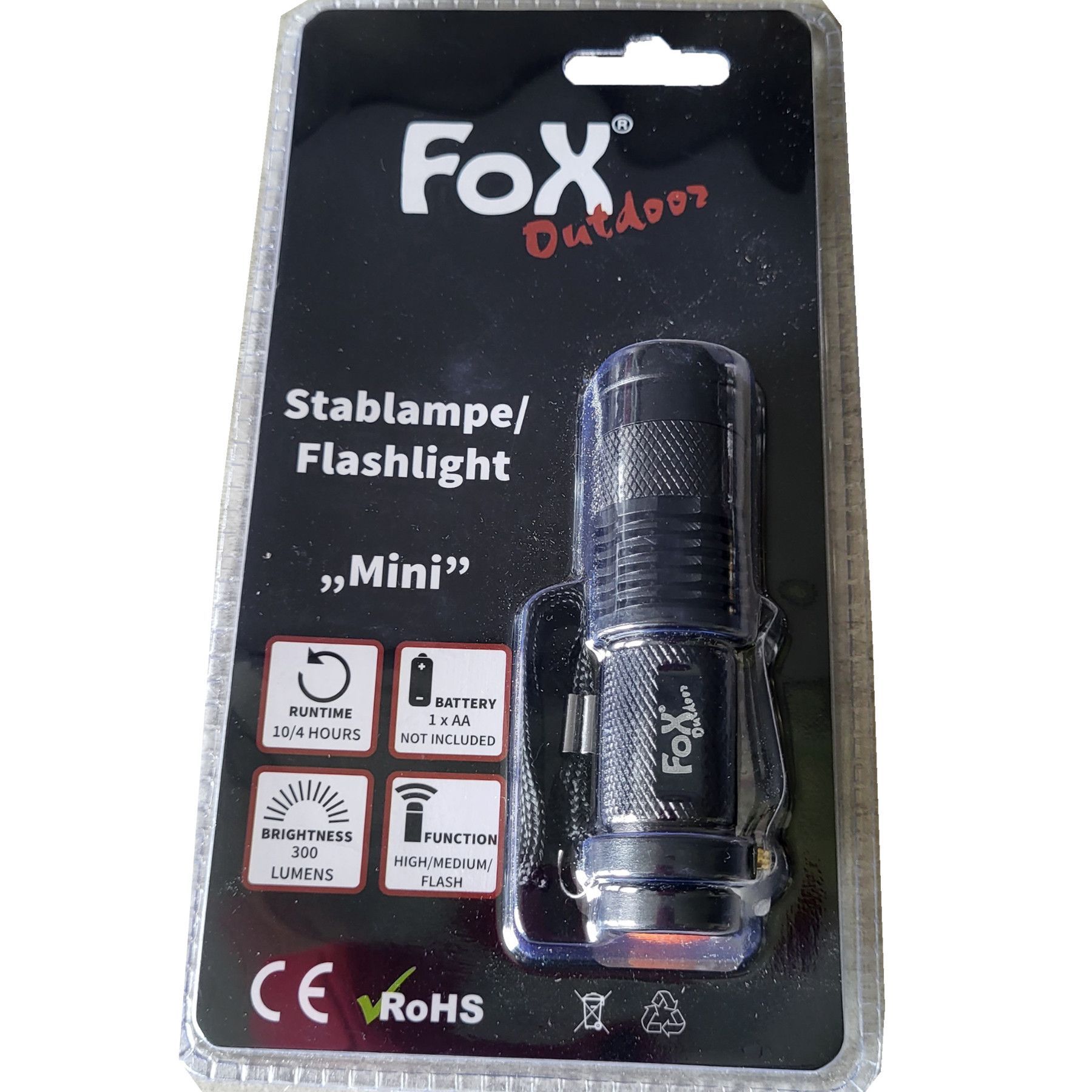 Fox Outdoor Fox Outdoor Stablampe "Mini" Taschenlampe schwarz mit Handschlaufe