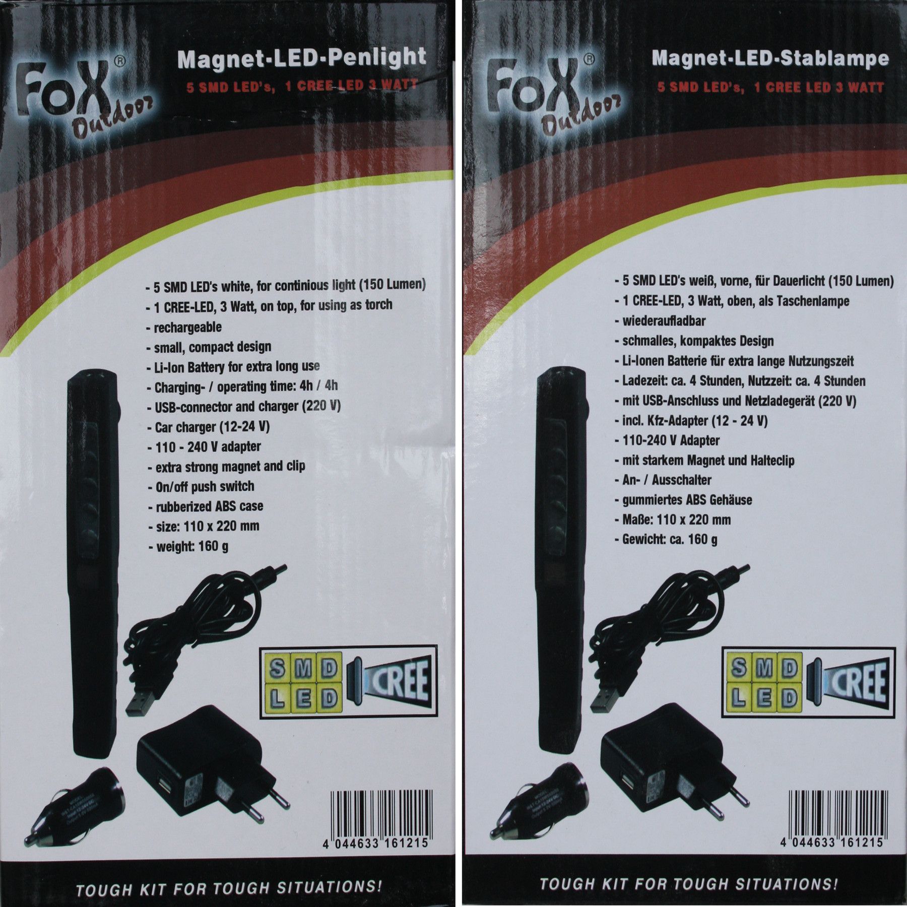 Fox Outdoor Fox Outdoor Stablampe Taschenlampe schwarz 2 Leuchtmodi wiederaufladbar
