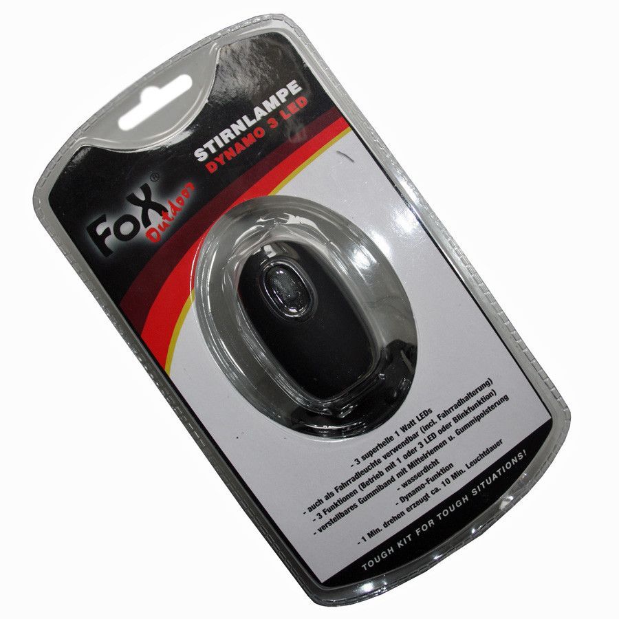 Fox Outdoor Fox Outdoor Stirnlampe Kopflampe auch als Fahrradleuchte verwendbar Dynamo Funktion