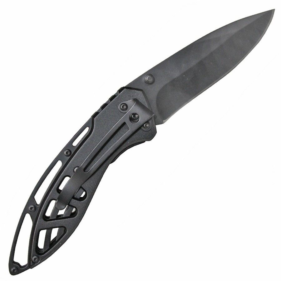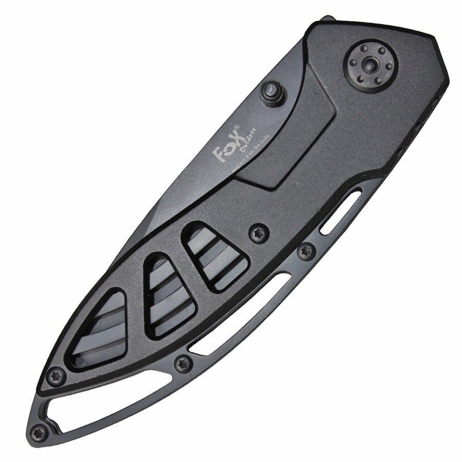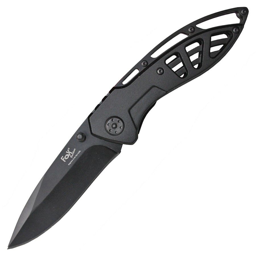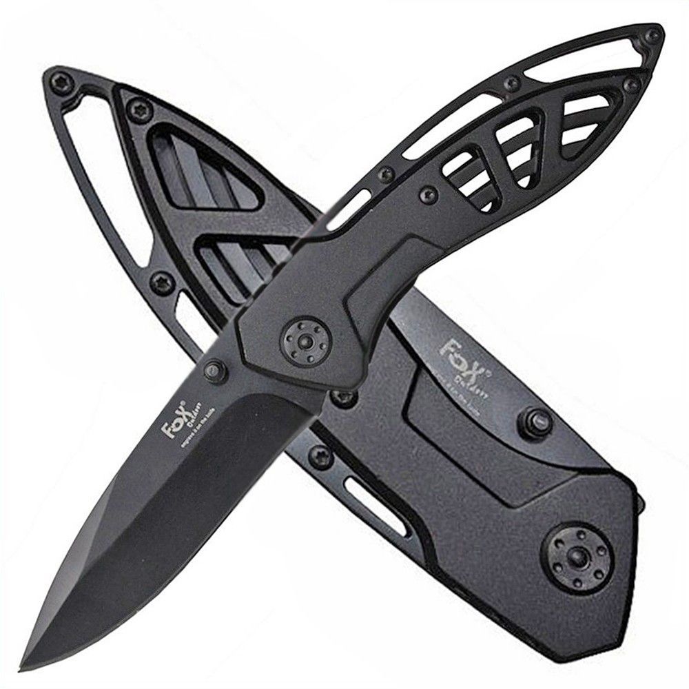 Fox Outdoor Fox Outdoor Taschenmesser Einhandmesser schwarze Klinge gelochter Griff