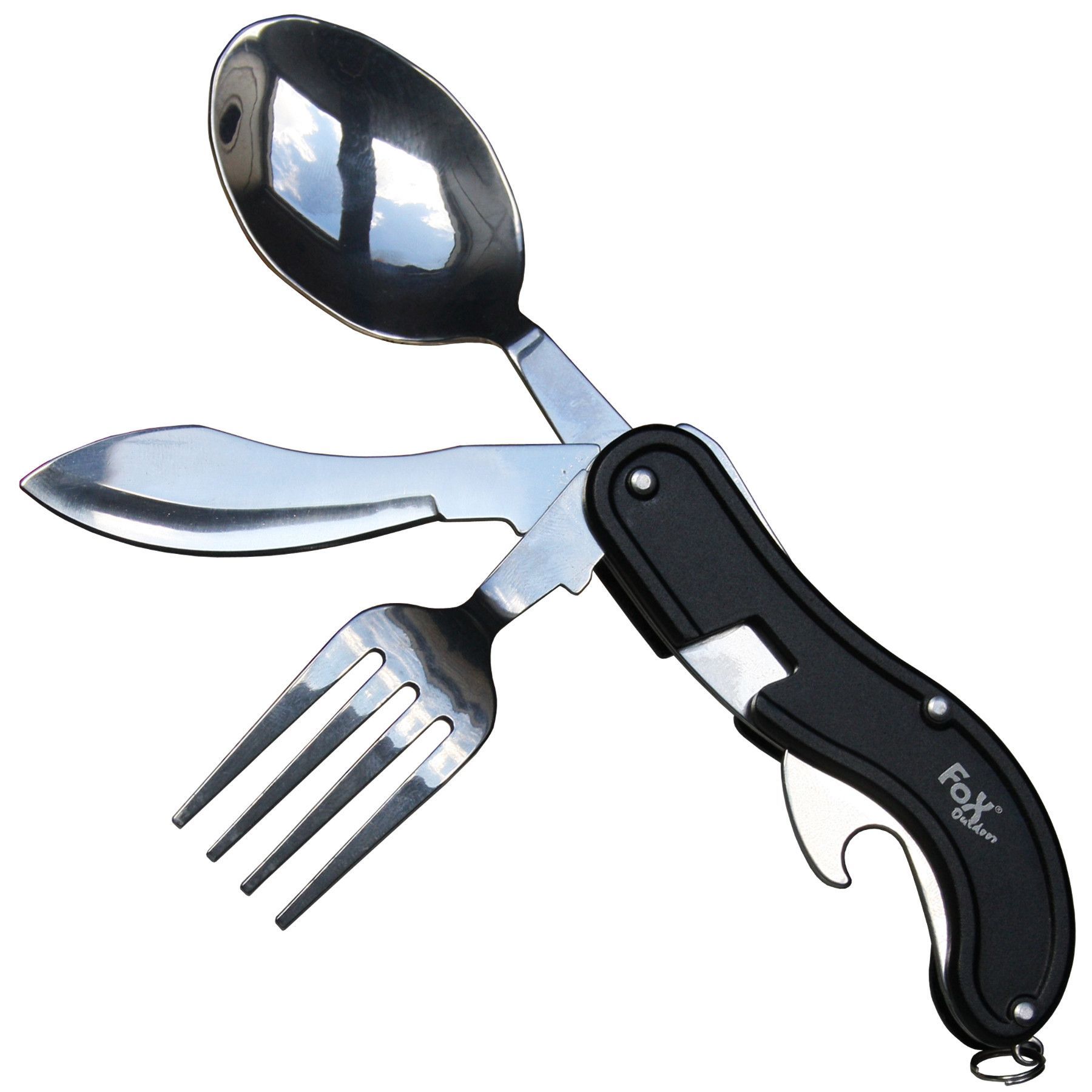 Fox Outdoor Fox Outdoor Taschenmesserbesteck 4 in 1 schwarz teilbar mit Etui