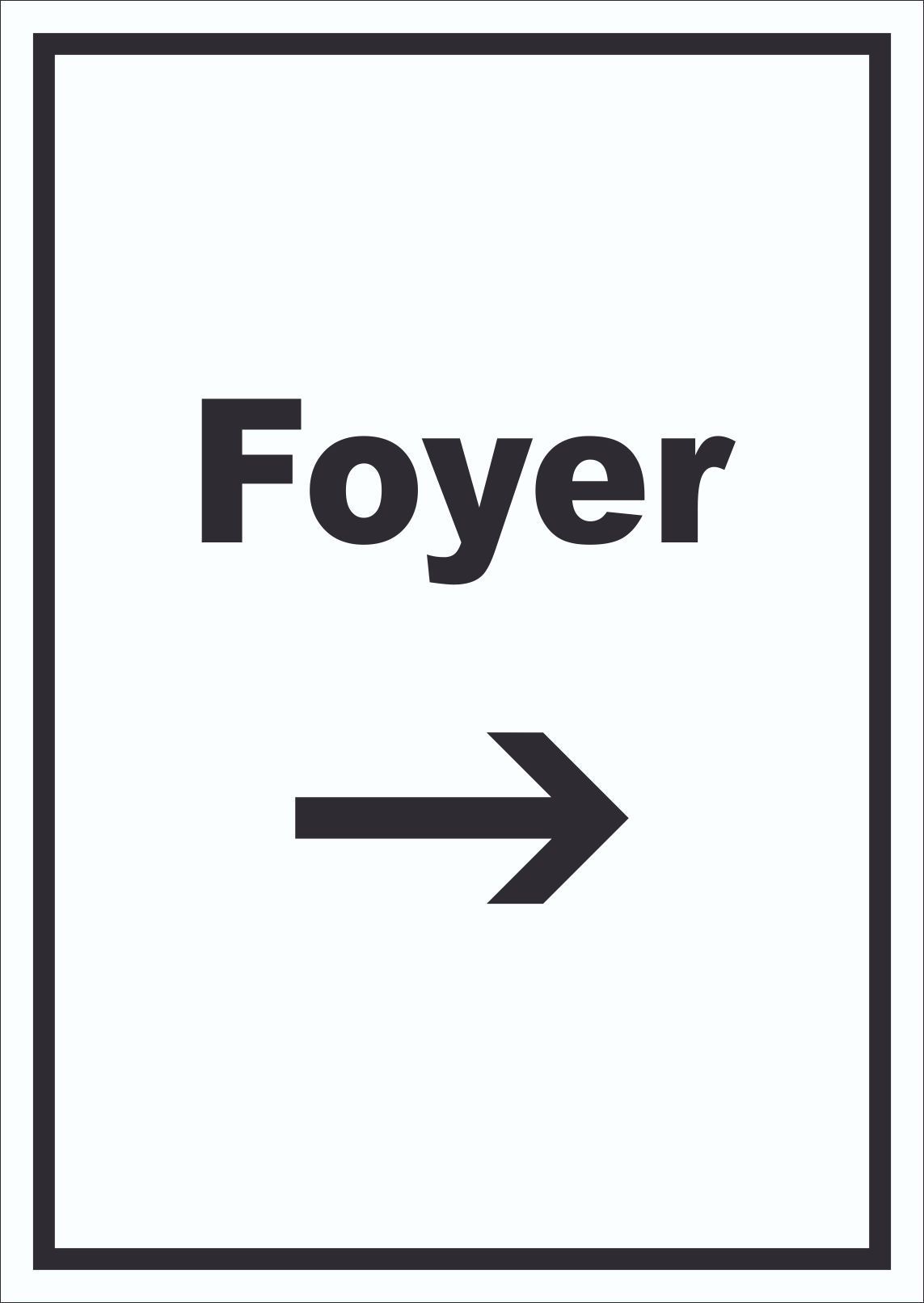 Foyer Schild mit Text und Richtungspfeil rechts Eingangshalle hochkant