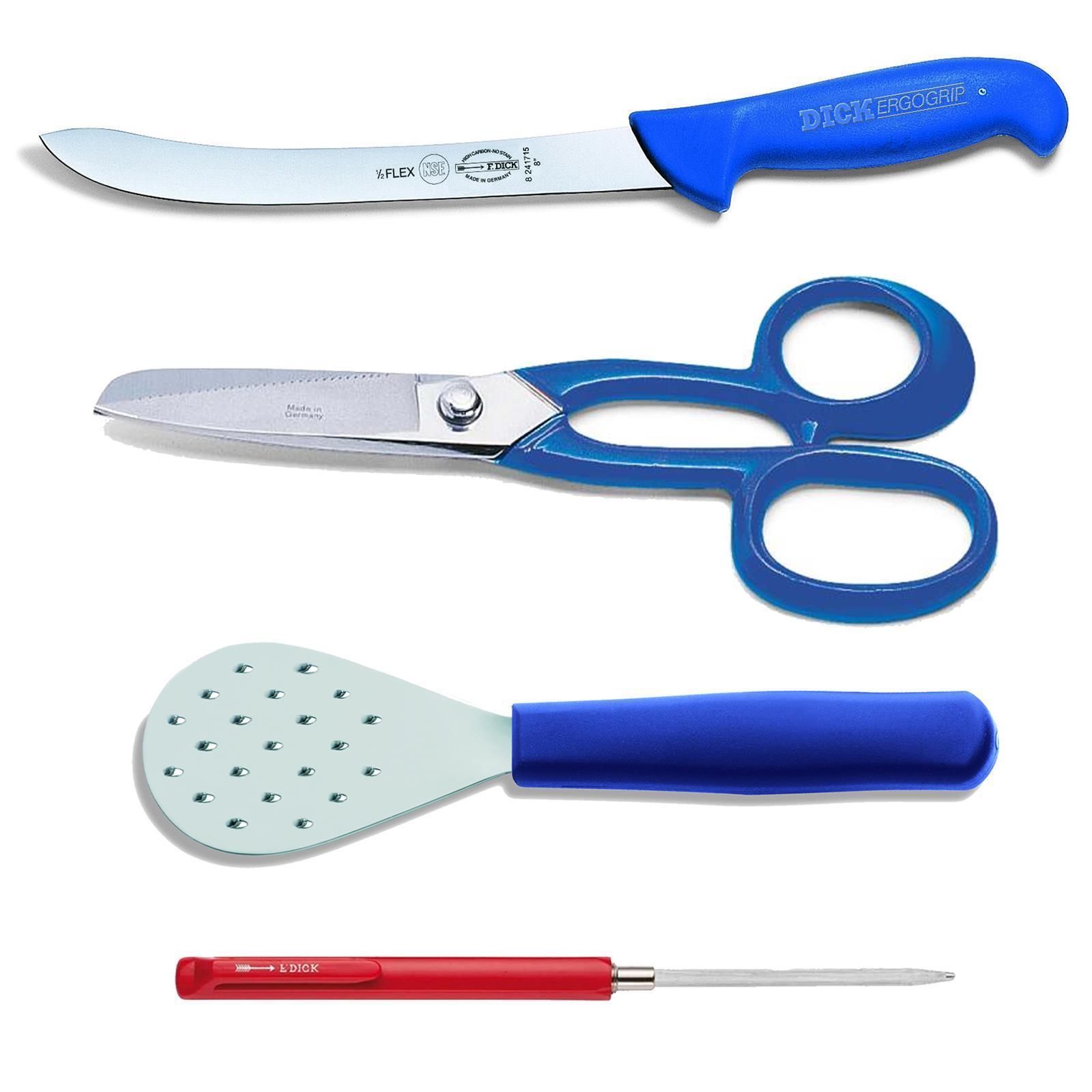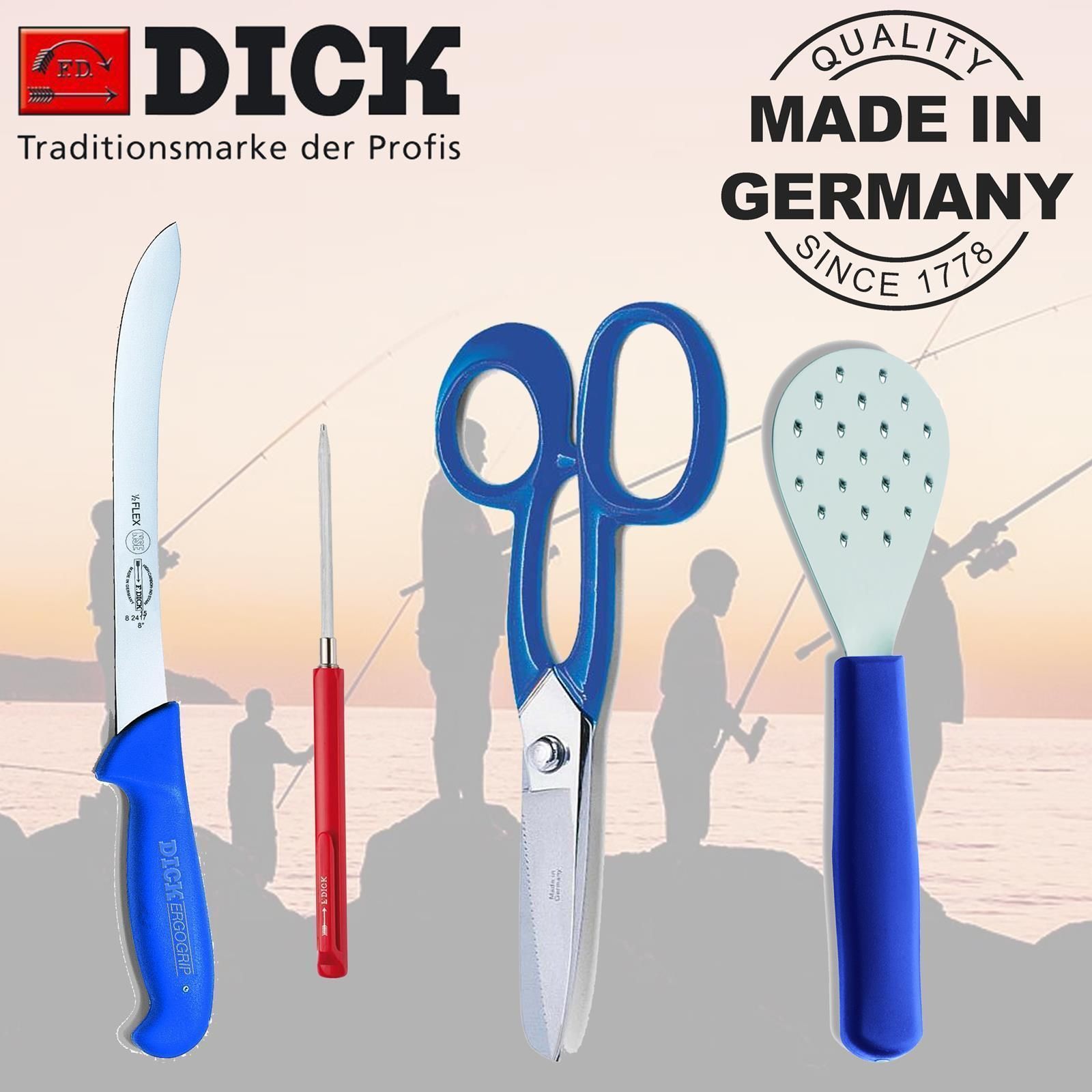Dick Fr. Dick Angel-Set 4-tlg. Flossenschere Filetiermesser schmal Schupper Wetzstahl