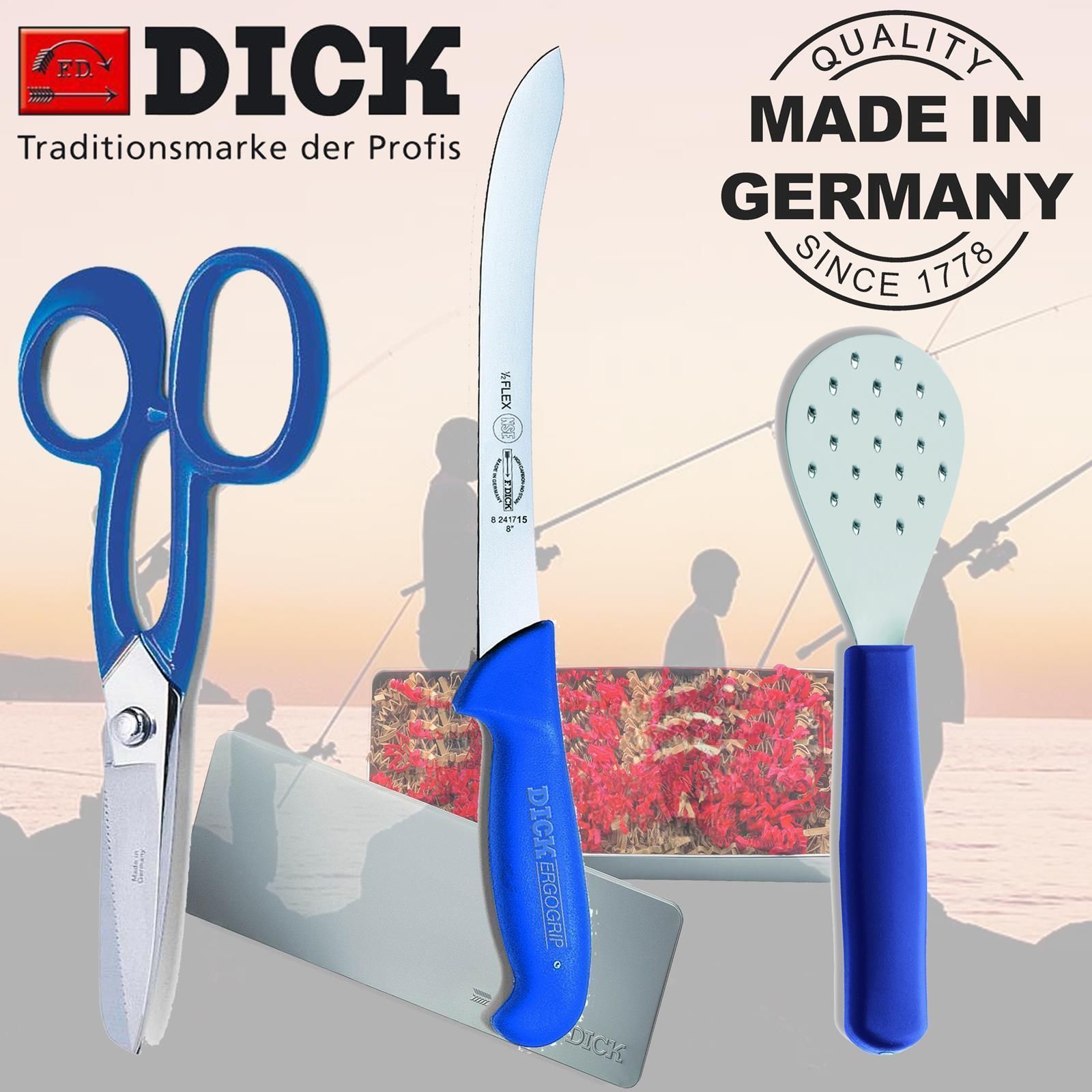 Dick Fr. Dick Fischfiliermesser Set 4-tlg. Anglermesser mit Schupper & Flossenschere