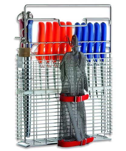 Dick Fr. Dick Messerhalter Edelstahl für 10 Messer, Wetzstahl & Handschuh wandhängend