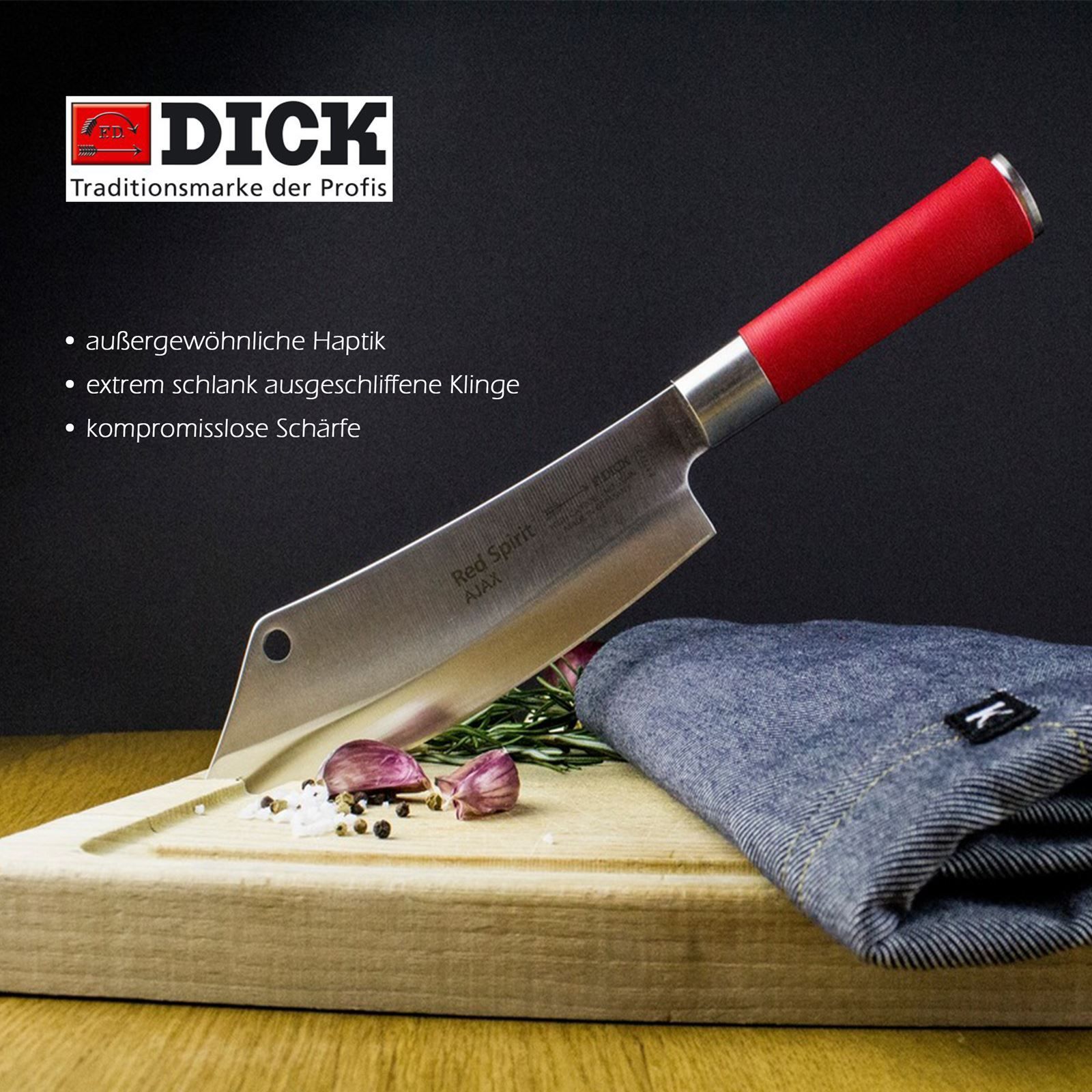 Dick Fr. Dick Red Spirit Set Kochmesser 20 cm Ajax & Wetzstahl 25 cm Standardzug rund
