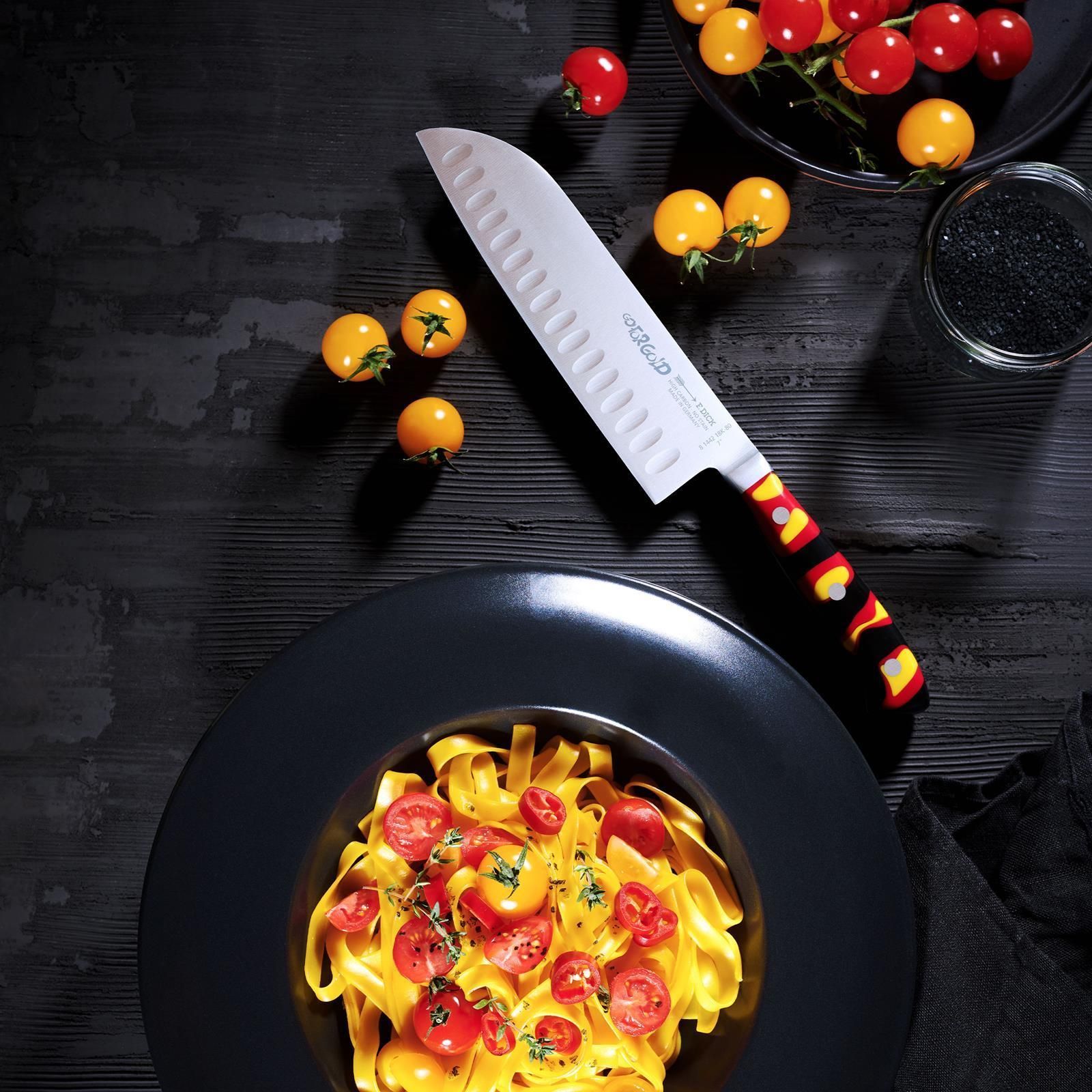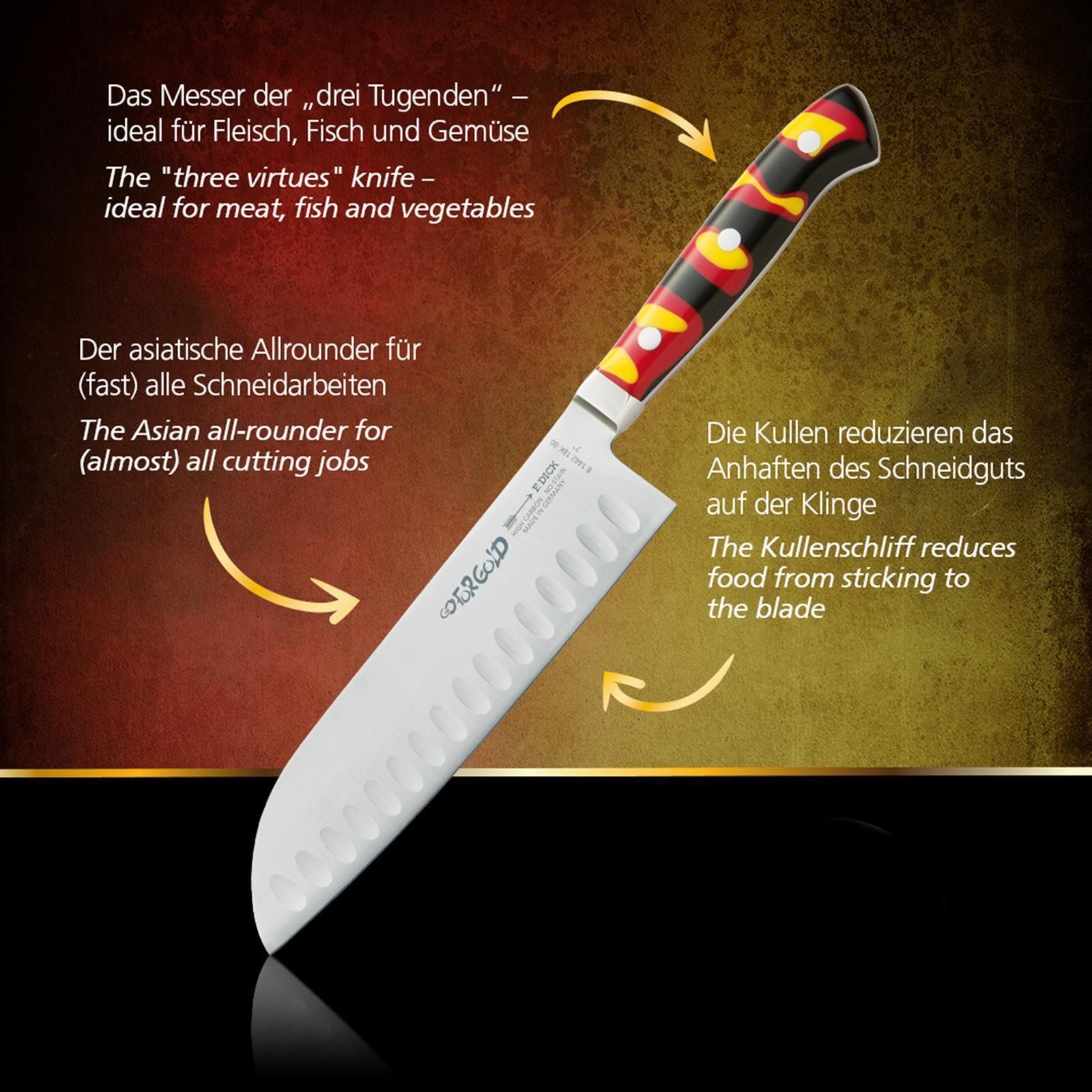 Dick Fr. Dick Santoku Messer 18 cm schwarz-rot-gelb Kullen Uni-Küchen-Allzweckmesser