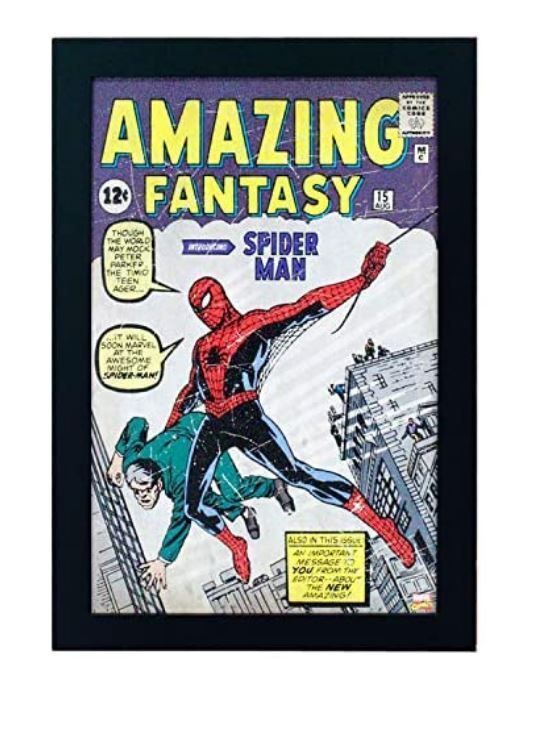Framed Art - Spiderman - Amazing Fantasy Größe ca. 33 x 48 cm incl. Rahmen Hochwertiges Bild mit Super Motiv Hergestellt mit einer taktilen und strukturierten Oberfläche, die aufgedruckt und von einem schwarzen MDF-Rahmen mit Holzmaserung umgeben ist, der das Bild ergänzt. Mit Sägezahnaufhänger. liz