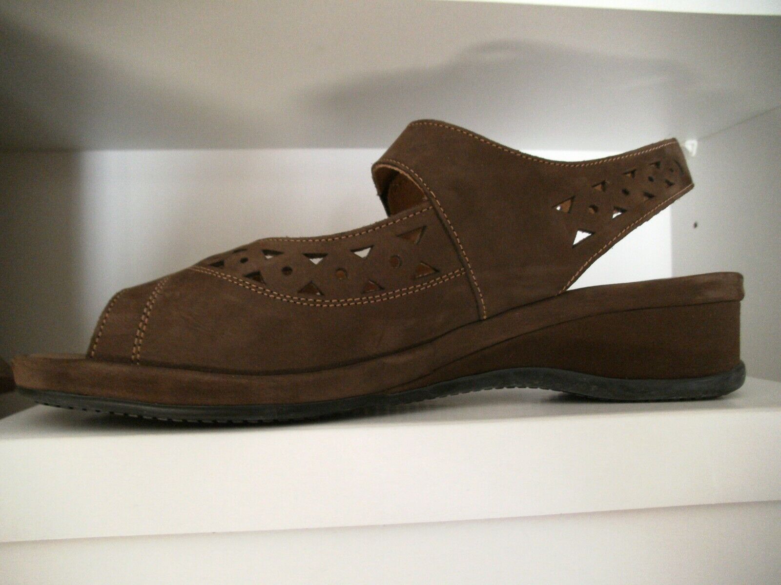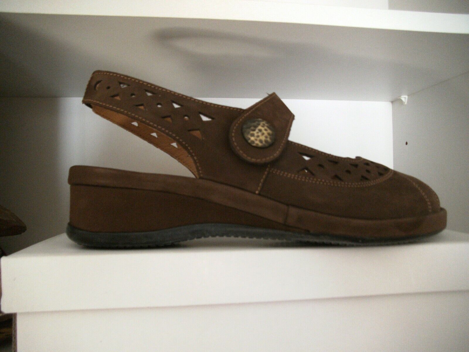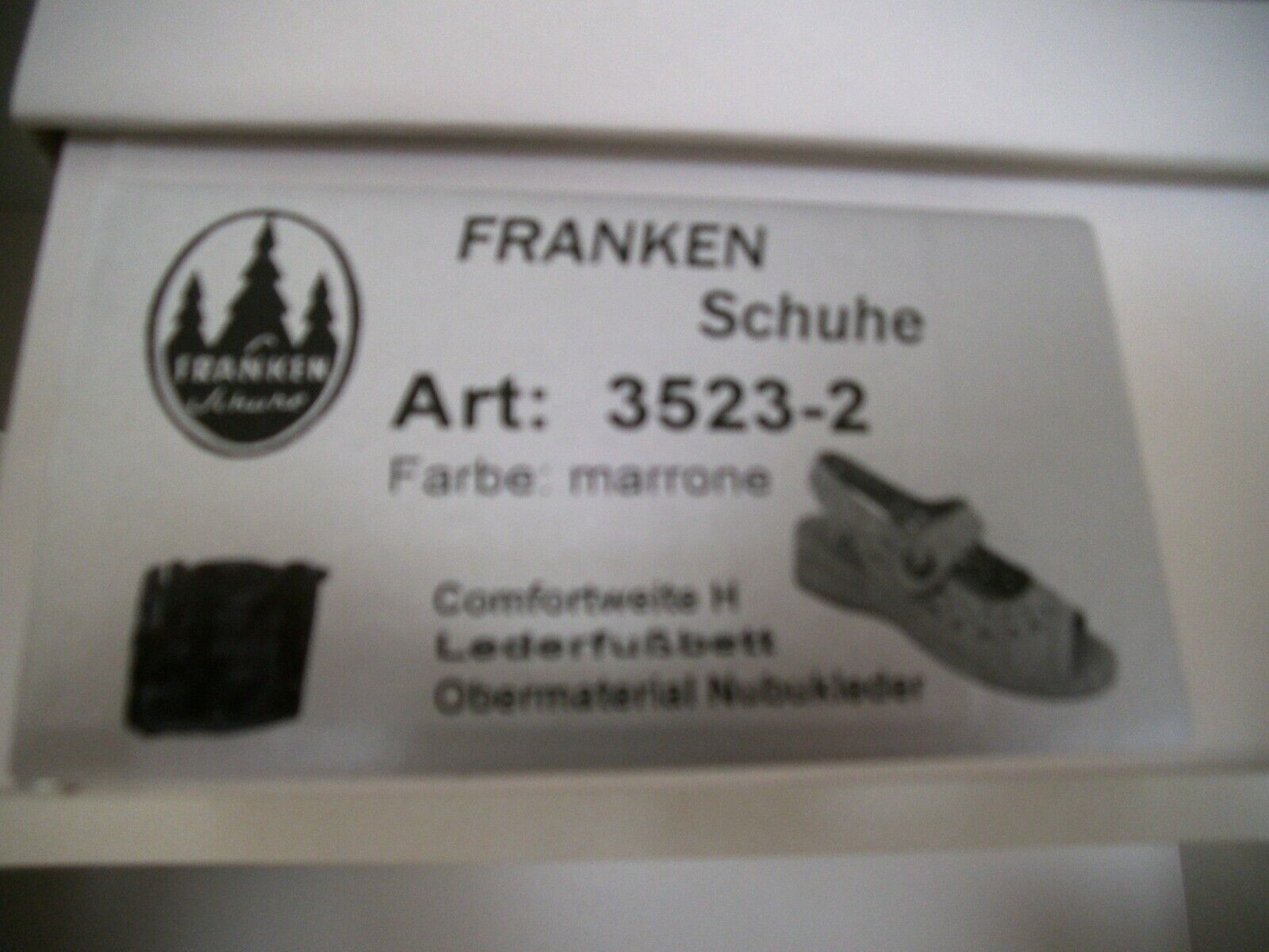 Frankenschuhe Damen Pantolette mit Riemchen Farbe: Marrone - Art. Nr. 3523-2 Pantolette mit Klettverschluss am Rist zur Weitenregulierung Riemchen an der Ferse für sicheren Halt Obermaterial: Nubukleder Lederfußbett Rutschfeste PU Laufsohle Absatzhöhe ca. 35 mm Weite H