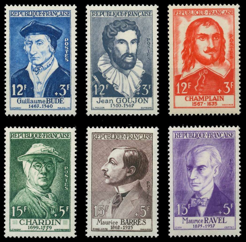 FRANKREICH 1956 Nr 1094-1099 postfrisch Ausgabe Persönlichkeiten 14.00€ incl. MwSt: Differenzbesteuert zzgl. Versandkosten Bestell-Nr.: 40B926 Katalog-Nr: MICHEL (1094 - 1099) Katalogpreis: 35 EUR Qualität: Normal Erhaltung: Postfrisch ** Einheit: Satz Bogenlage: Gummierung: Geprüft: Versandums