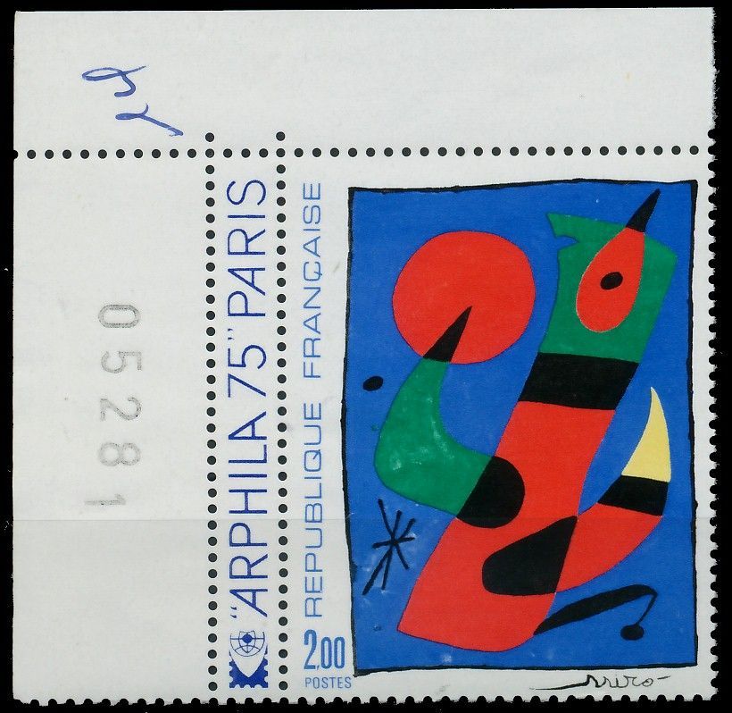 FRANKREICH 1974 Nr 1885Zfl postfrisch ECKE-OLI Gemälde von Joan Miro mit Zierfeld links 1.09€ incl. MwSt: Differenzbesteuert zzgl. Versandkosten Bestell-Nr.: 61EE6A Katalog-Nr: MICHEL (1885 Zfl) Katalogpreis: 1,60 EUR Qualität: Normal Erhaltung: Postfrisch ** Einheit: Einzelmarke Einzelstück Bo