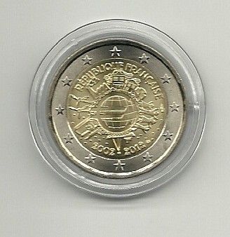 Frankreich 2 Euro Gedenkmünze unzirkuliert 2012 10 Jahre Euro Bargeld Versand im Luftpolsterumschlag ab 2,00 Euro Kein PAYPAL