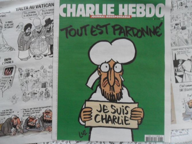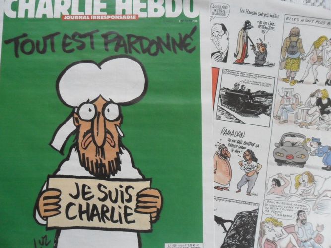 Charlie Hebdo Journal Irresponsable Nr. 1178 Tout est pardonné Je Suis Charlie Originalausgabe - keine Reproduktion Von den COMIC-Kollegen der ermordeten Rdaktionsmitglieder entworfen - bei Libération. Kleine Auflage - hier das französische Original Sprache Französisch Zustand: neu und