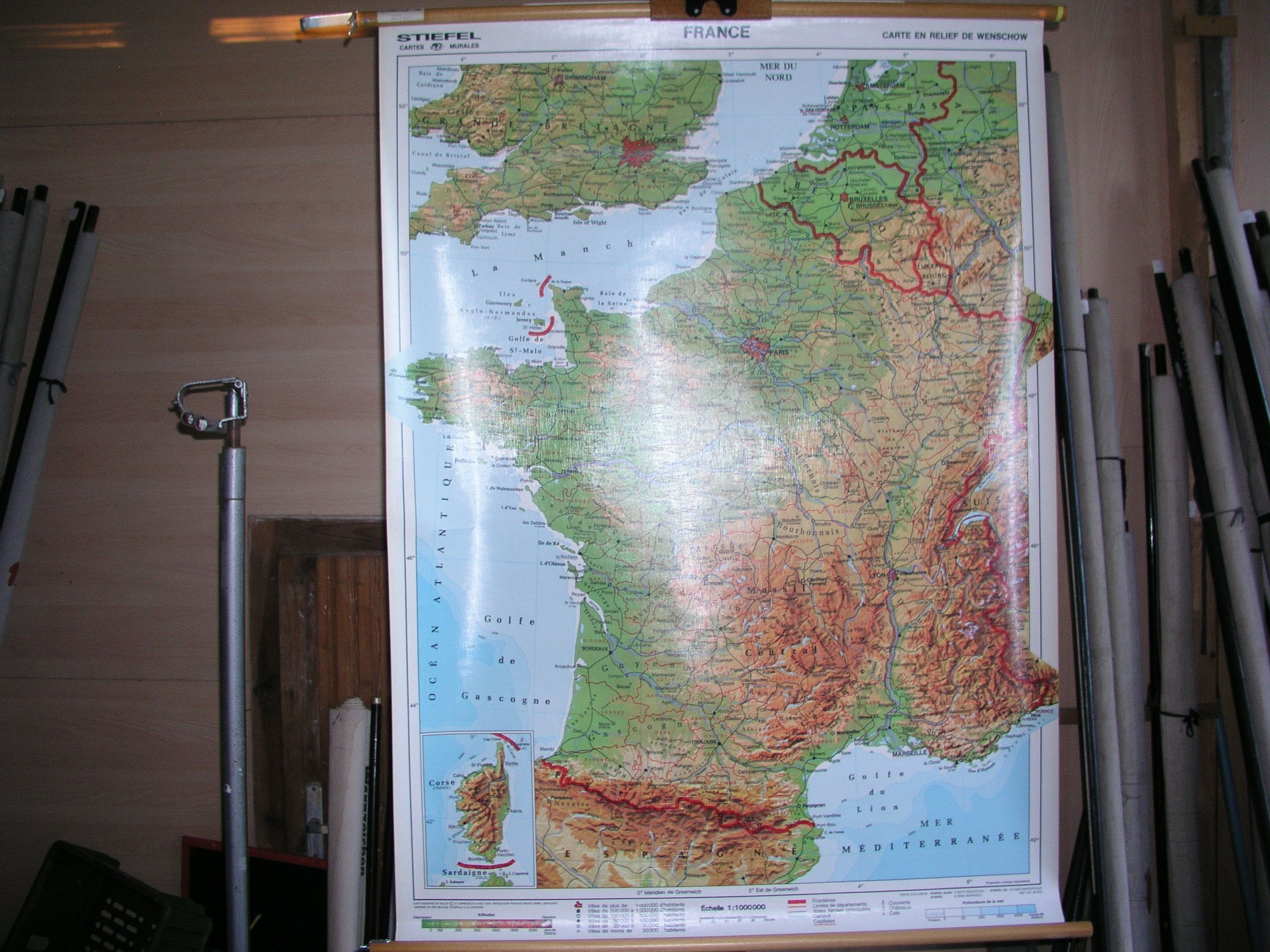 Frankreich physisch französischer Text 1980 Schulwandkarte Wandkarte 100x137cm Nr1296 France (B13) Stiefel, 1980 , 1 zu 1 Mio, Euro. Auflage, 100x137cm plus Stäbe, kein Leinen, in französischer Sprache gehalten powered by plentymarkets