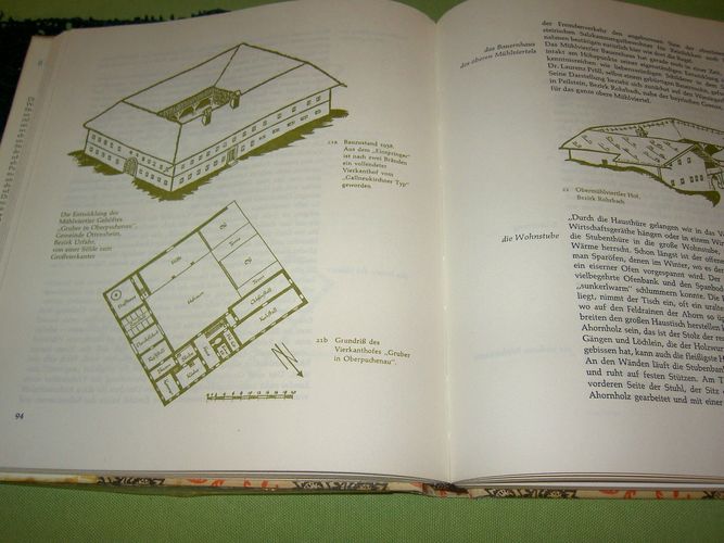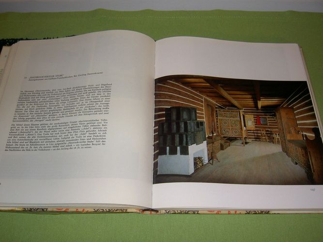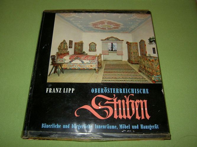 Bäuerliche und bürgerliche Innenräume, Möbel und Hausgerät, erschienen 1966 im Verlag Wimmer, Linz, Leinen mit Schutzumschlag, 290 Seiten, fester Buchblock, Reste von Klebstoff auf der Innenseite der Buchdeckel