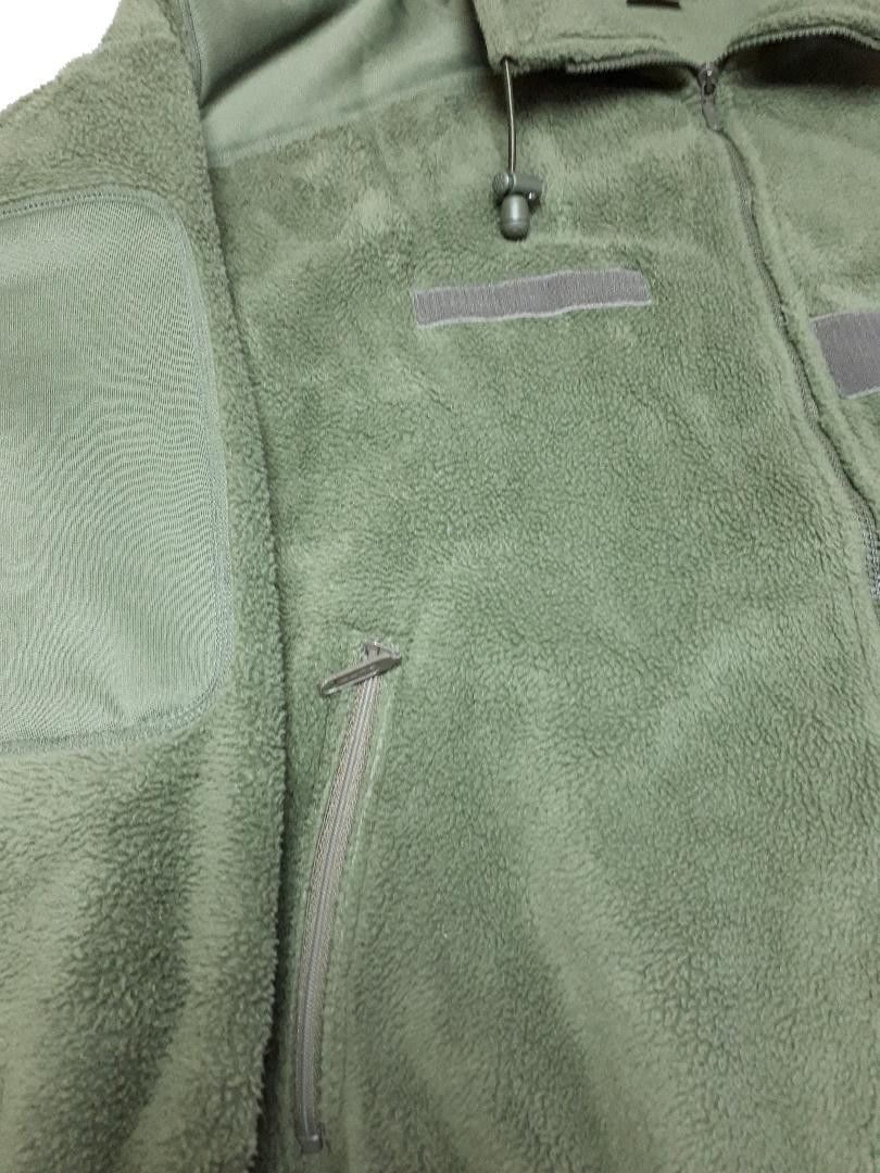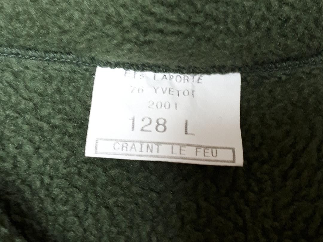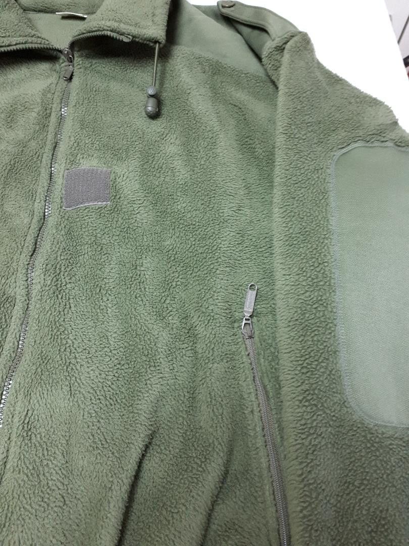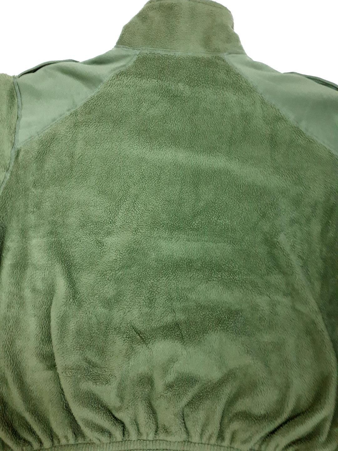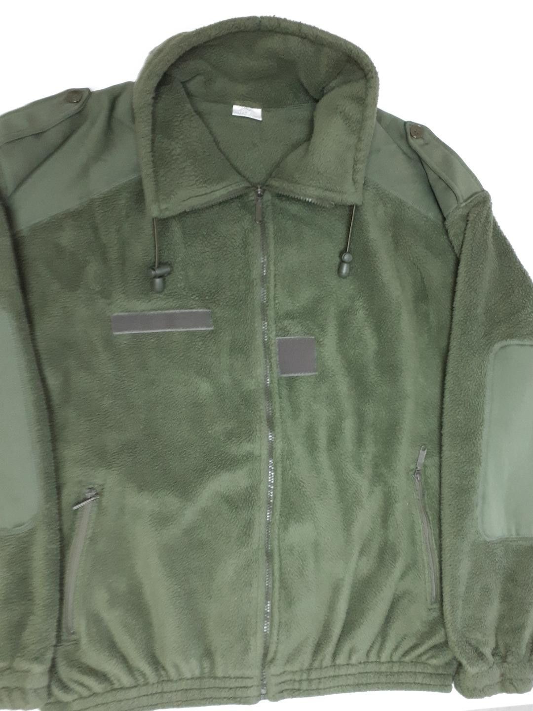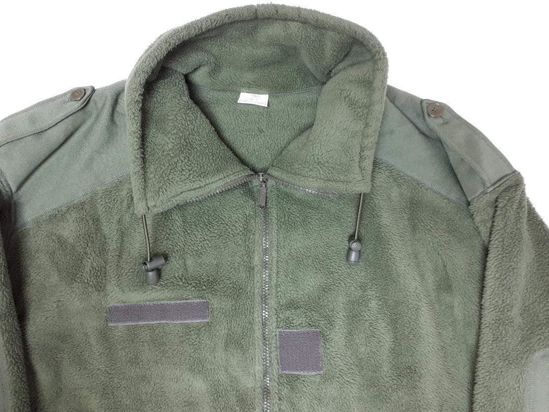 Französische Armee Fleecejacke K 12 * Schulterklappen * 2 Seitentaschen mit Reißverschluß * Zugband mit Stoppern im Kragen * Frontreißverschluß * Schulter- und Ellenbogen mit Nylonbesatz * Farbe: oliv * Maße: - ca. 164 cm Brustumfang - ca. 80 cm Rückenlänge - ca. 67 cm Ärmellänge Zustand: gut -gebraucht mit kleinen Gebrauchsspuren