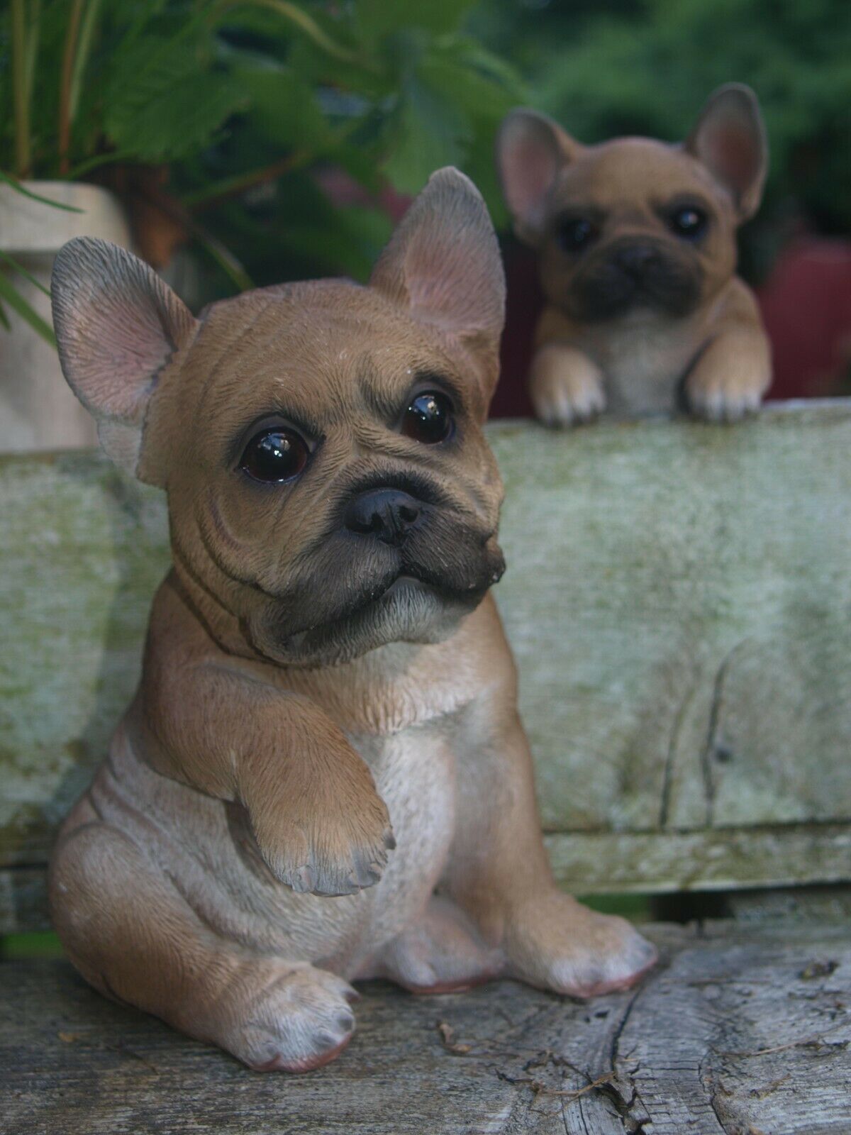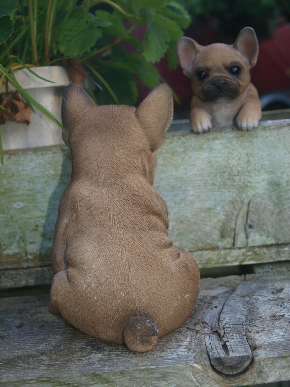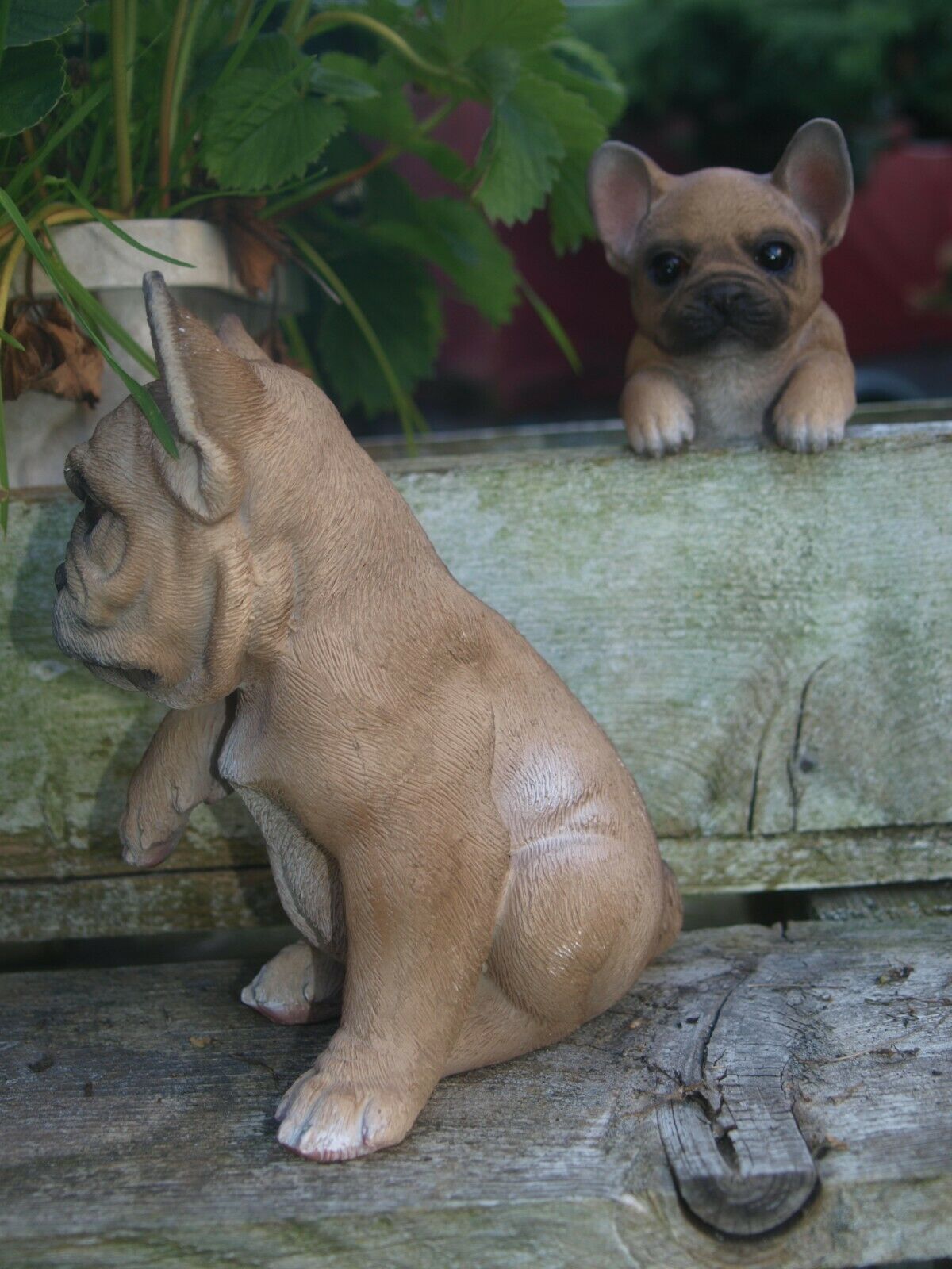französische Bulldogge Deko Figur wetterfest Puppy sitz o. häng Gartenfigur NEU