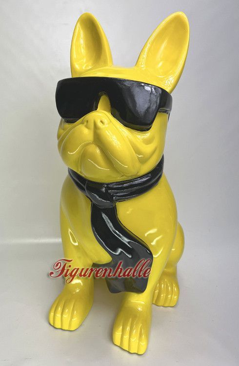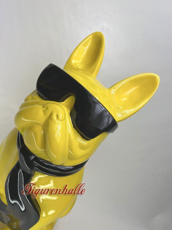 Französische Bulldogge Sonnenbrille Krawatte Figur Statue Pop Art gelb gr. 120cm Deko
