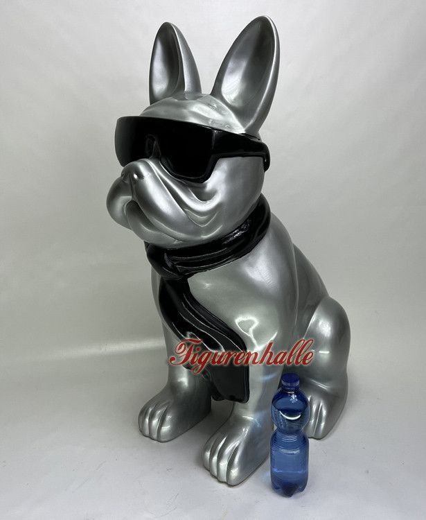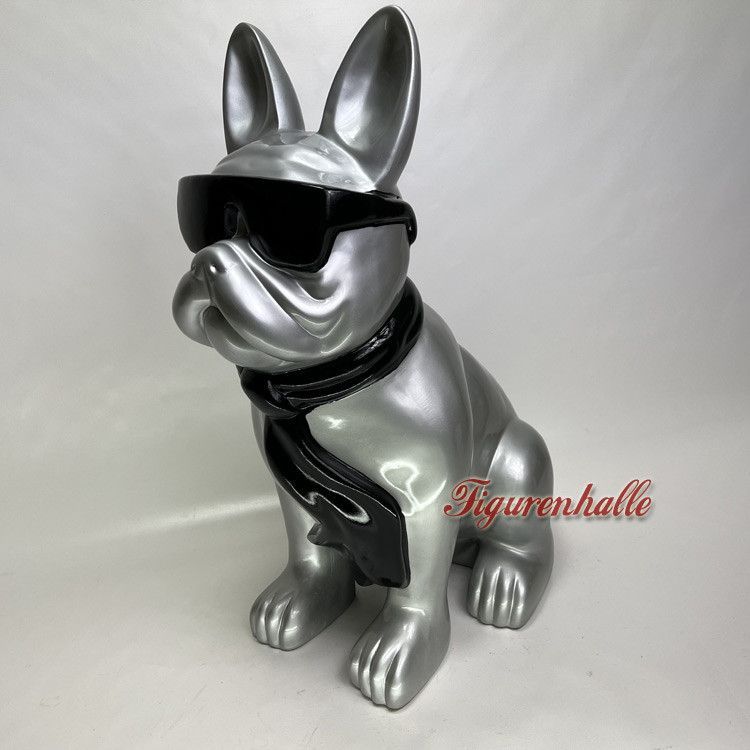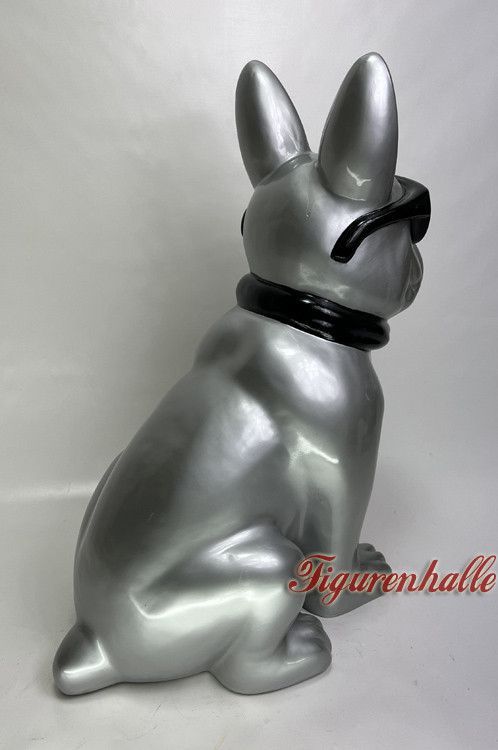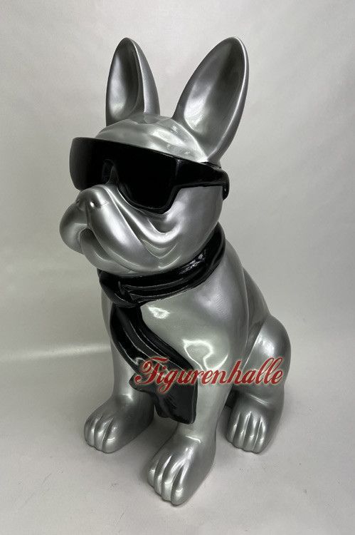 Französische Bulldogge Sonnenbrille Krawatte Figur Statue Pop Art silber groß Deko