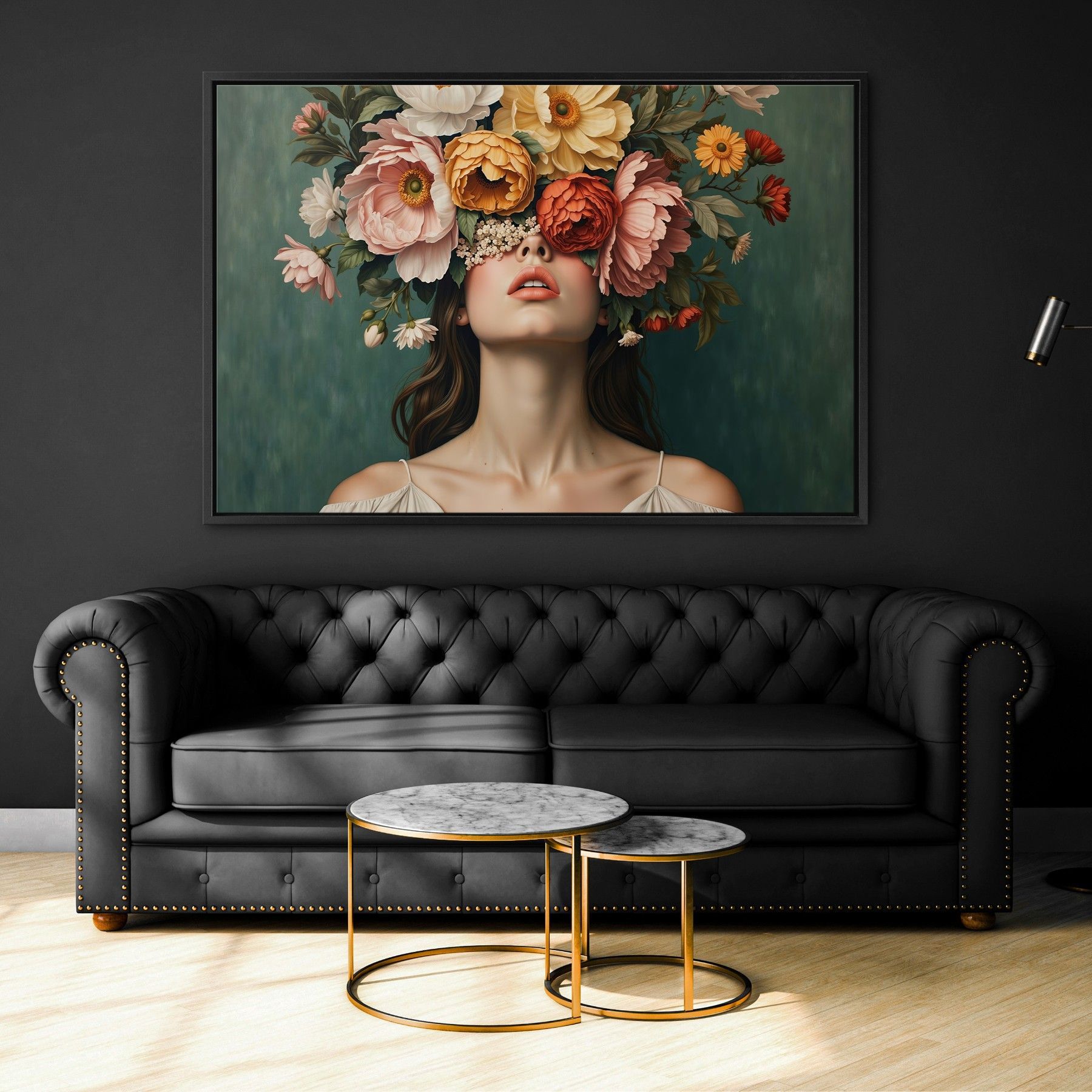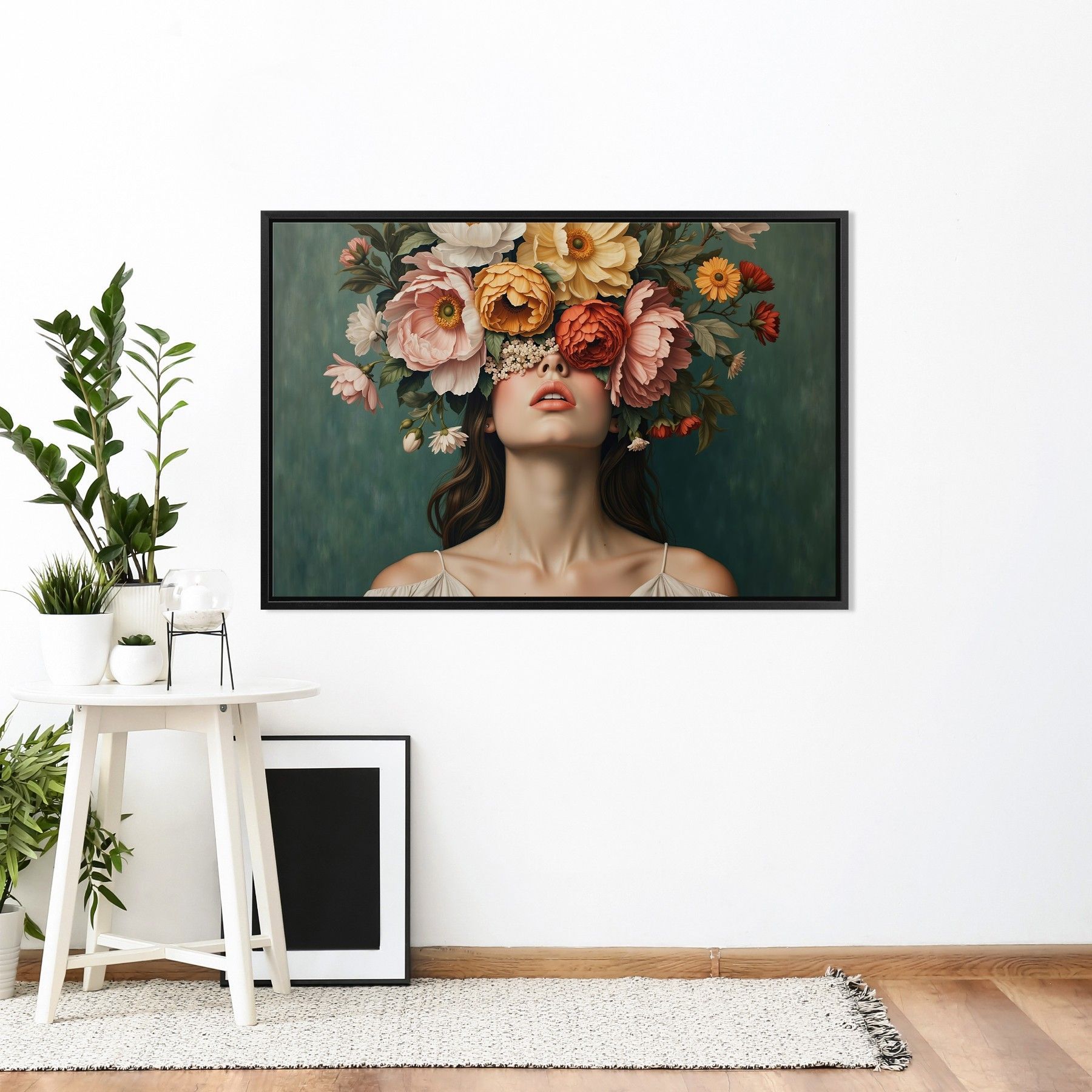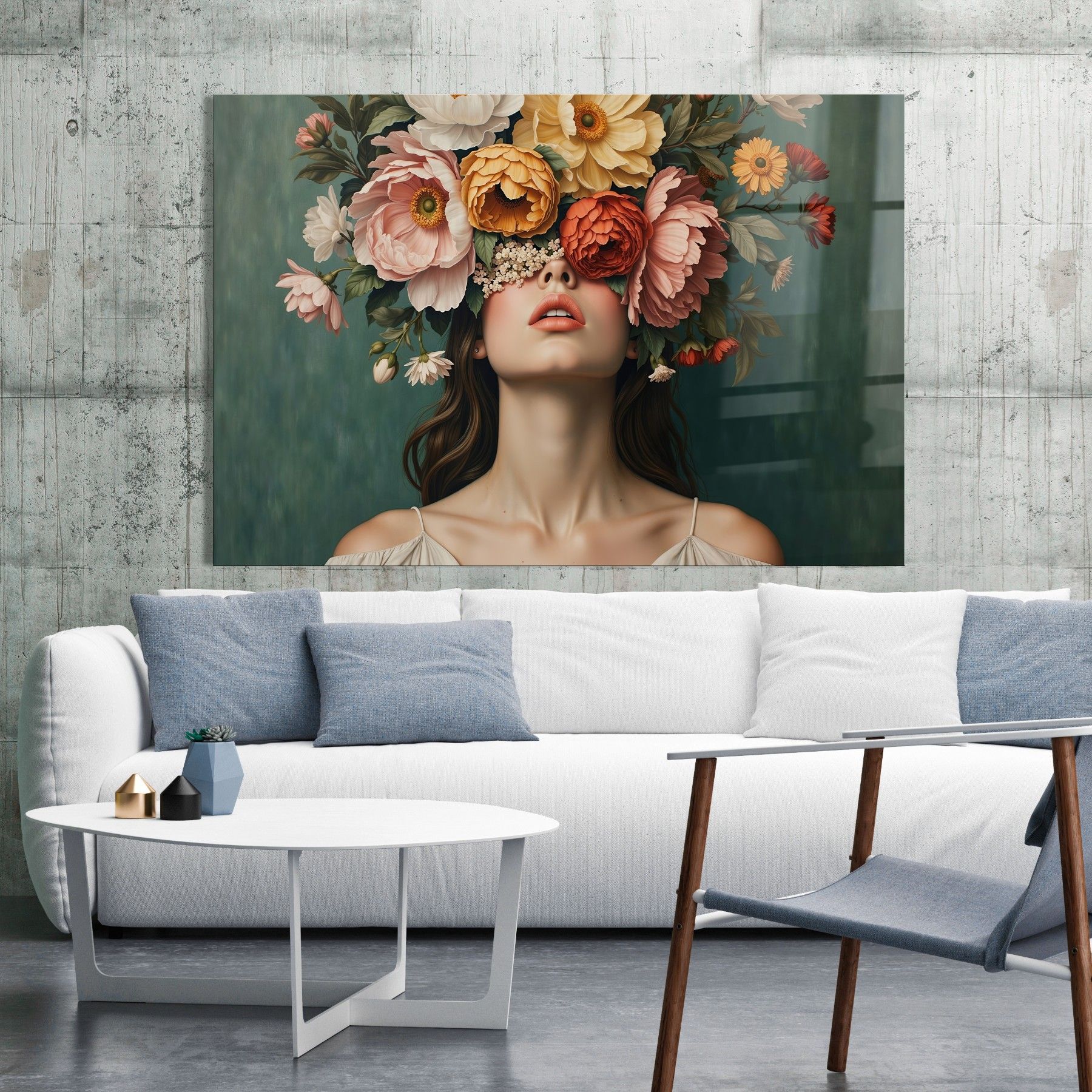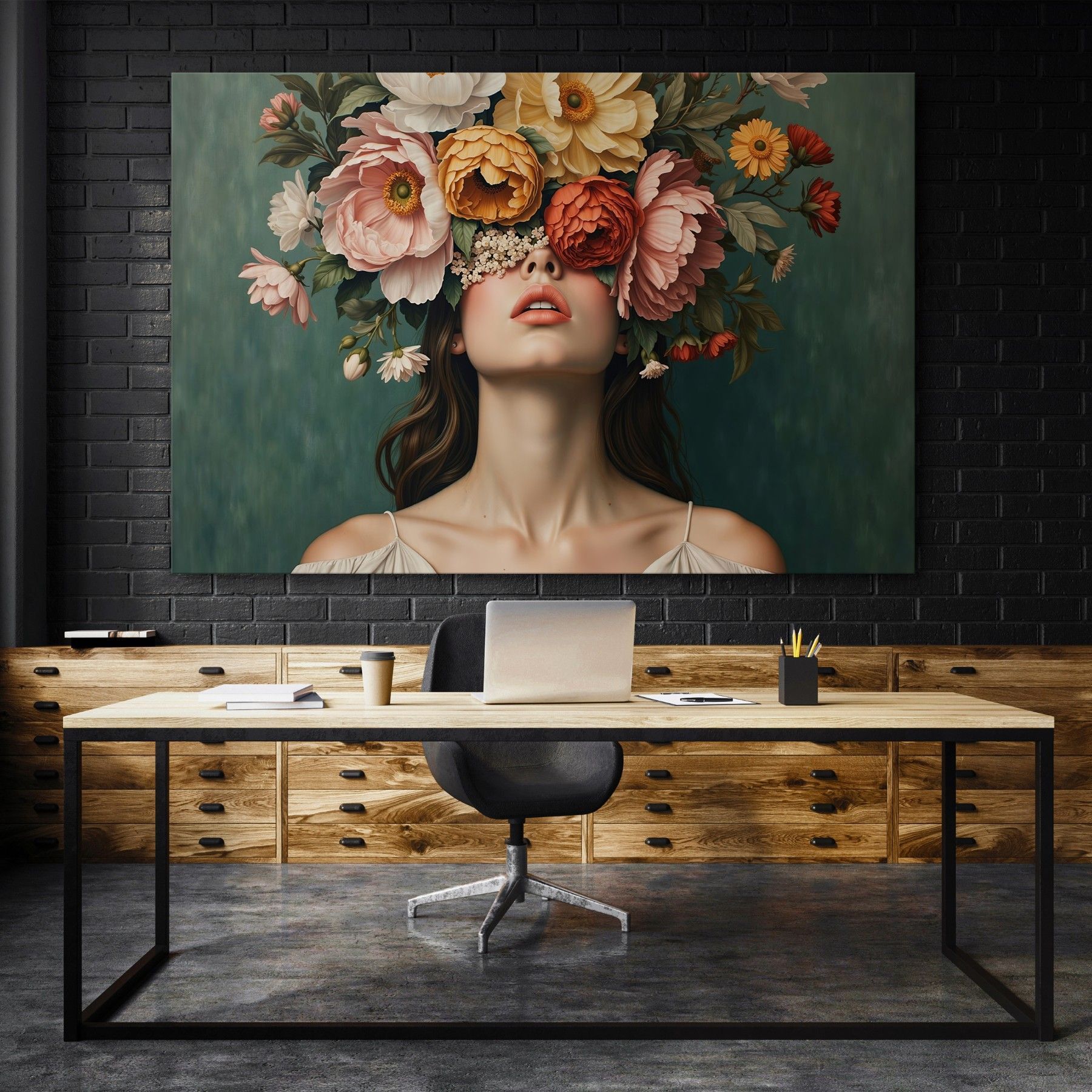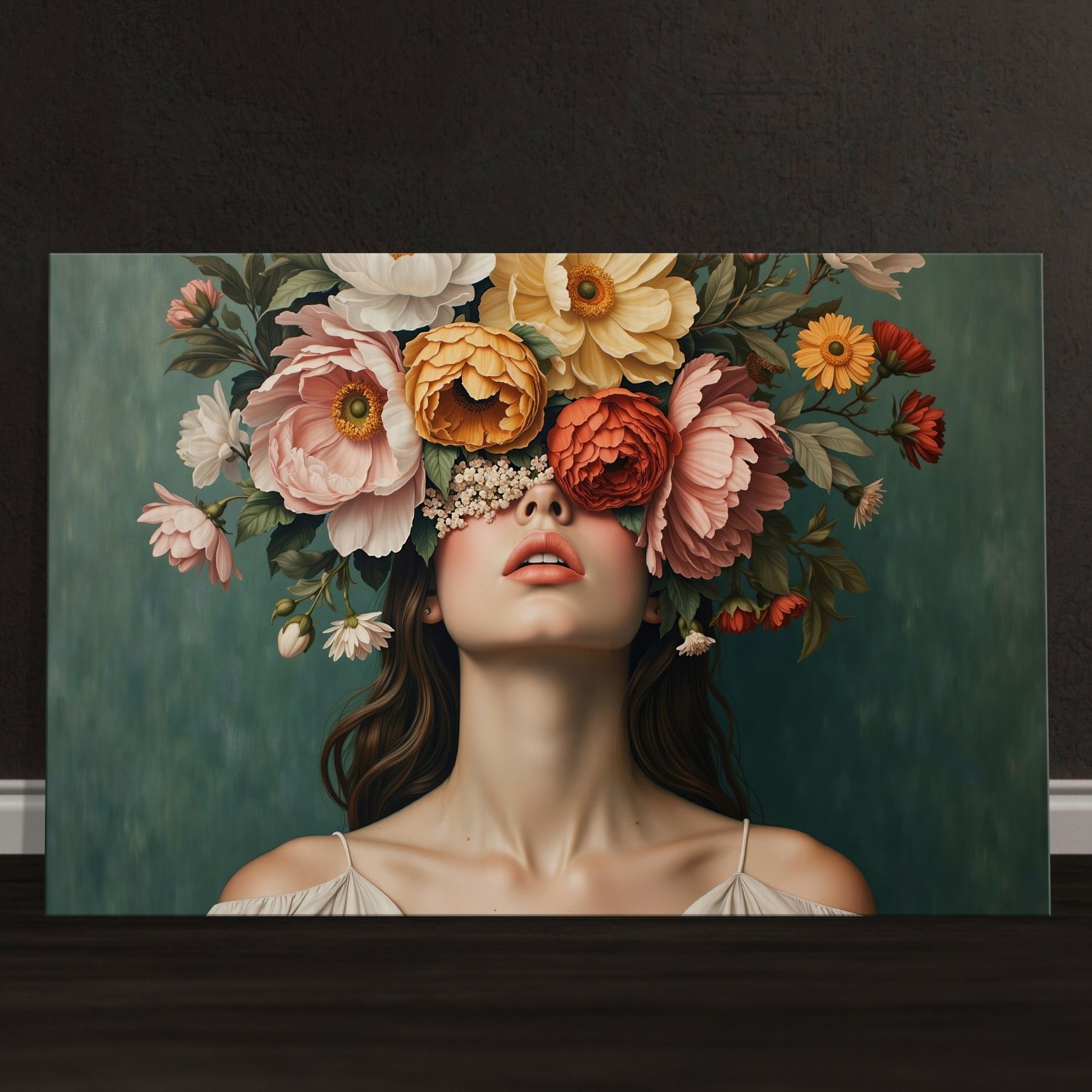 Frau mit Blumenporträt, weibliche Kunst Wandbild Leinwand, Acrylglas, Poster Nr10