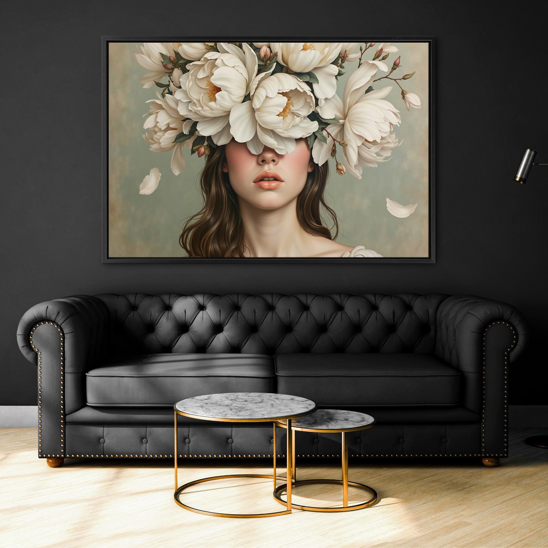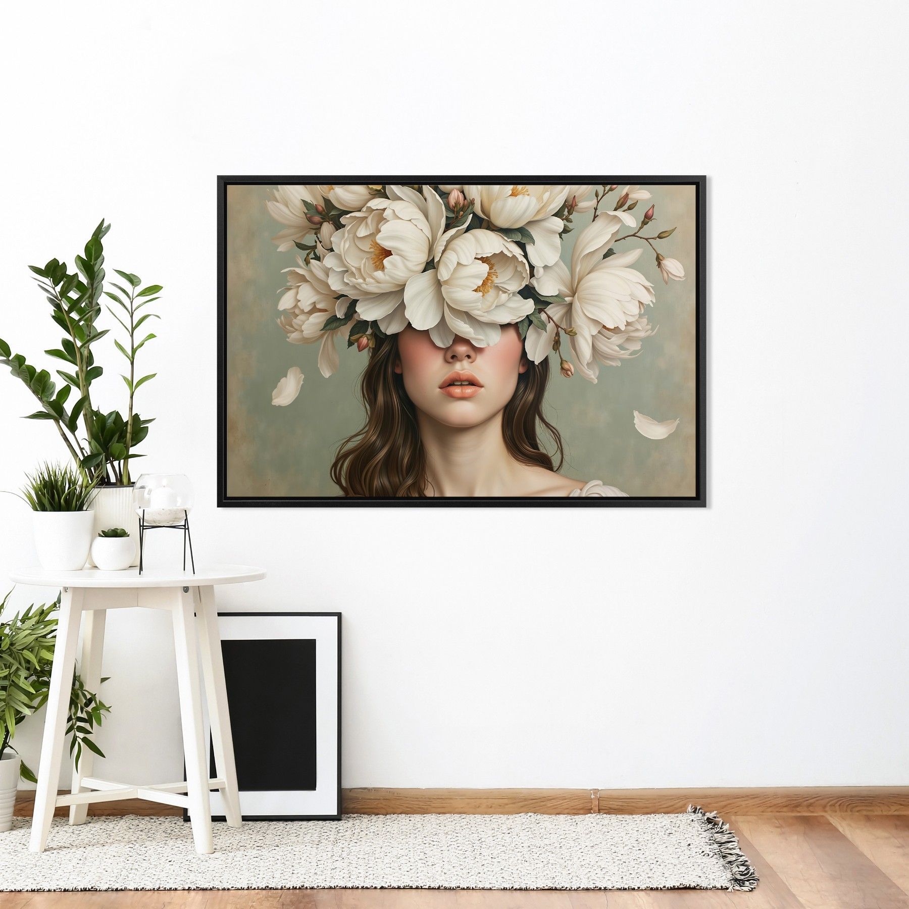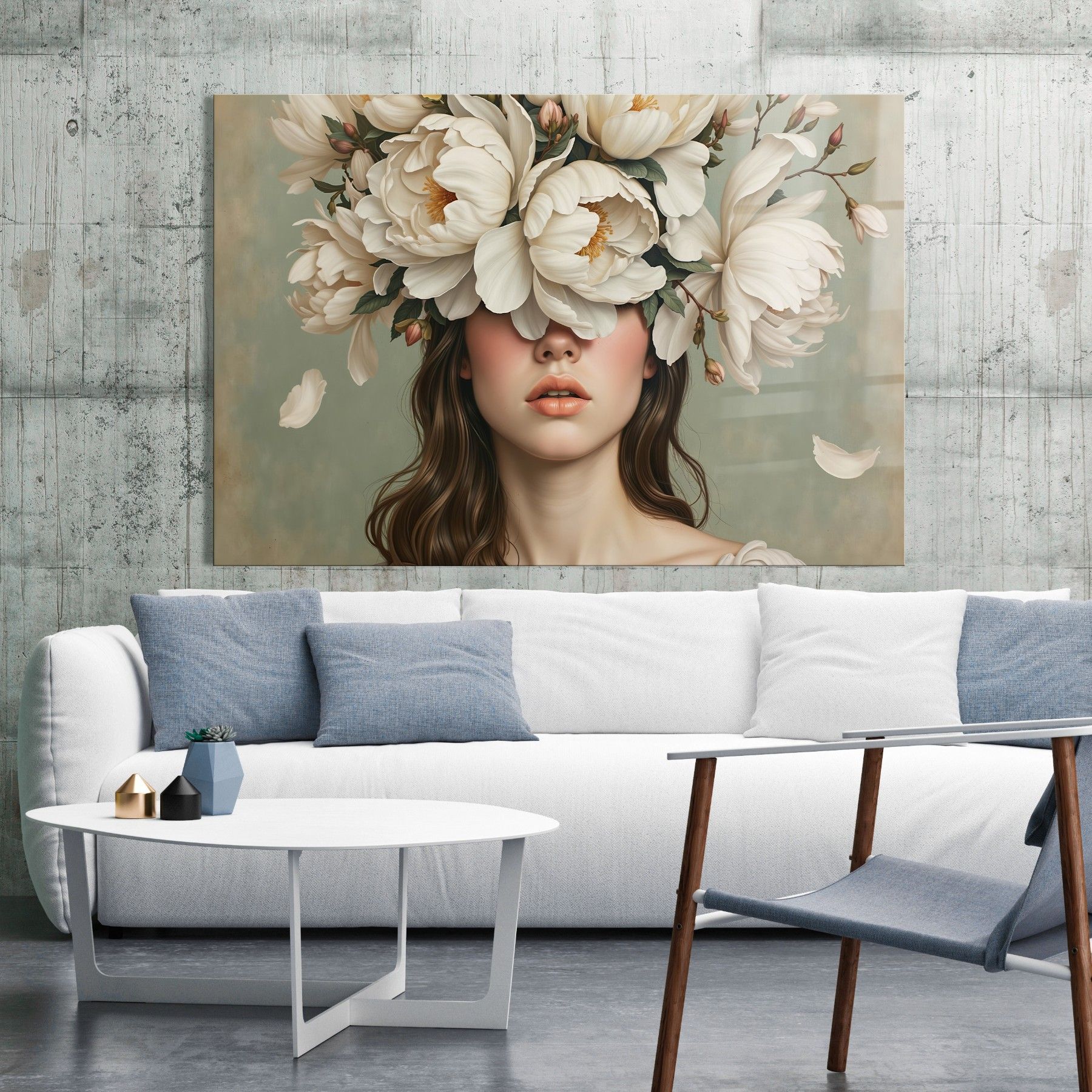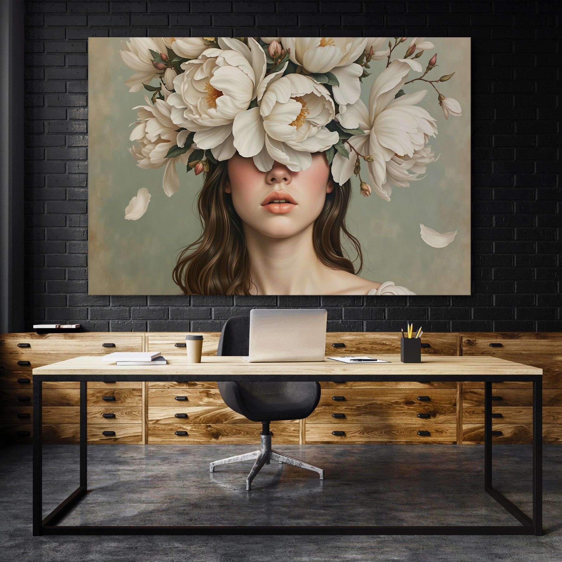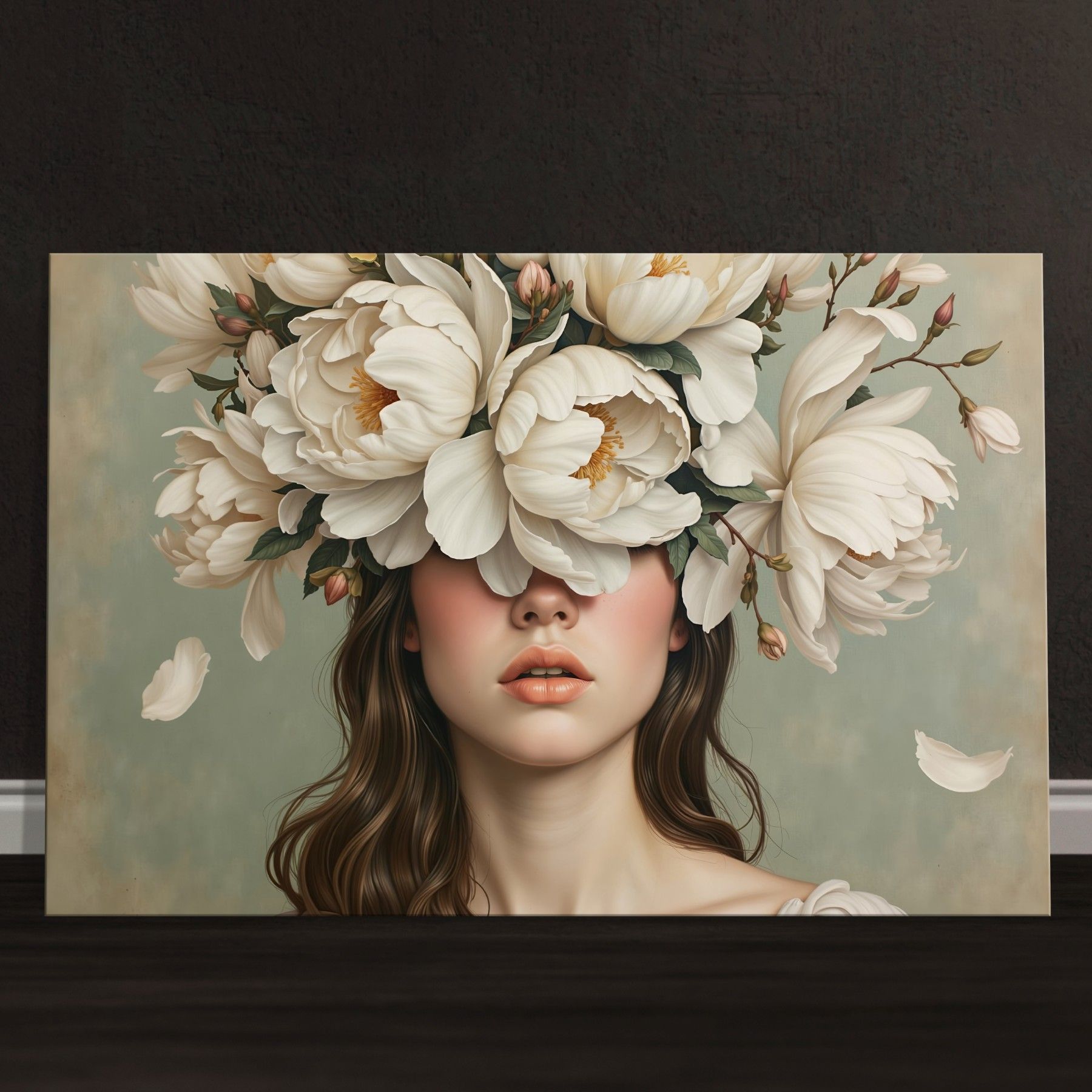Frau mit Blumenporträt, weibliche Kunst Wandbild Leinwand, Acrylglas, Poster Nr16