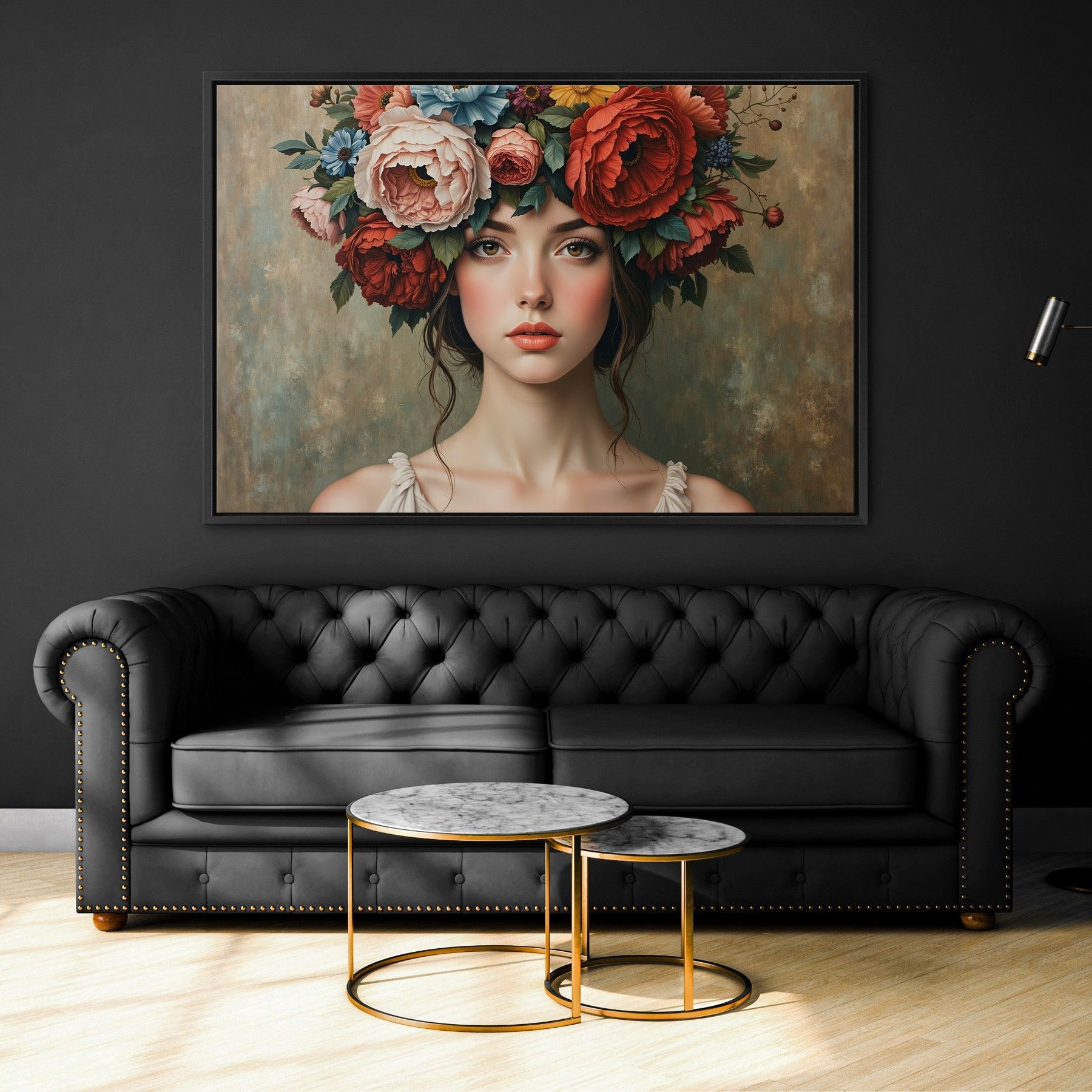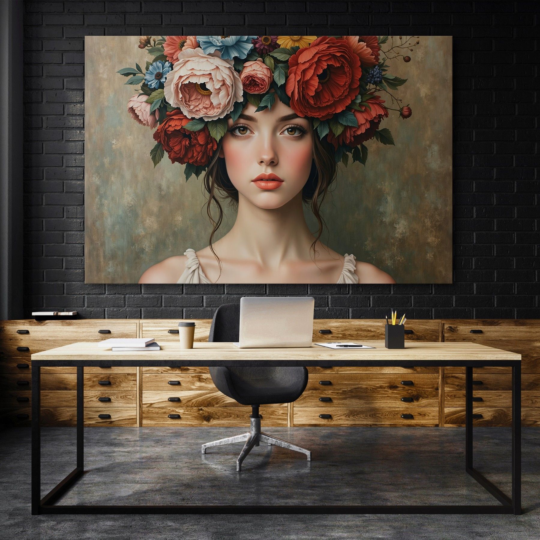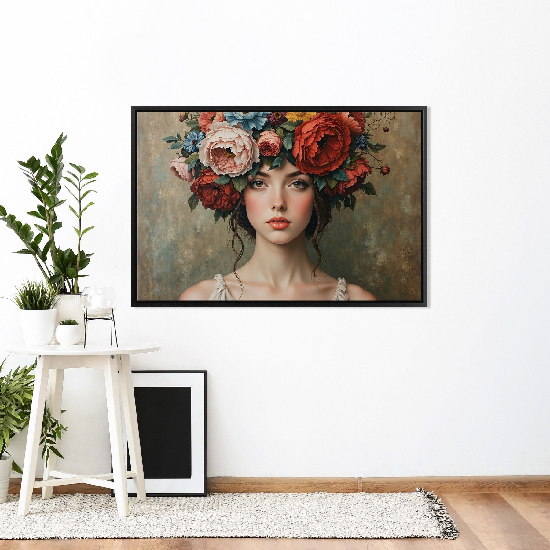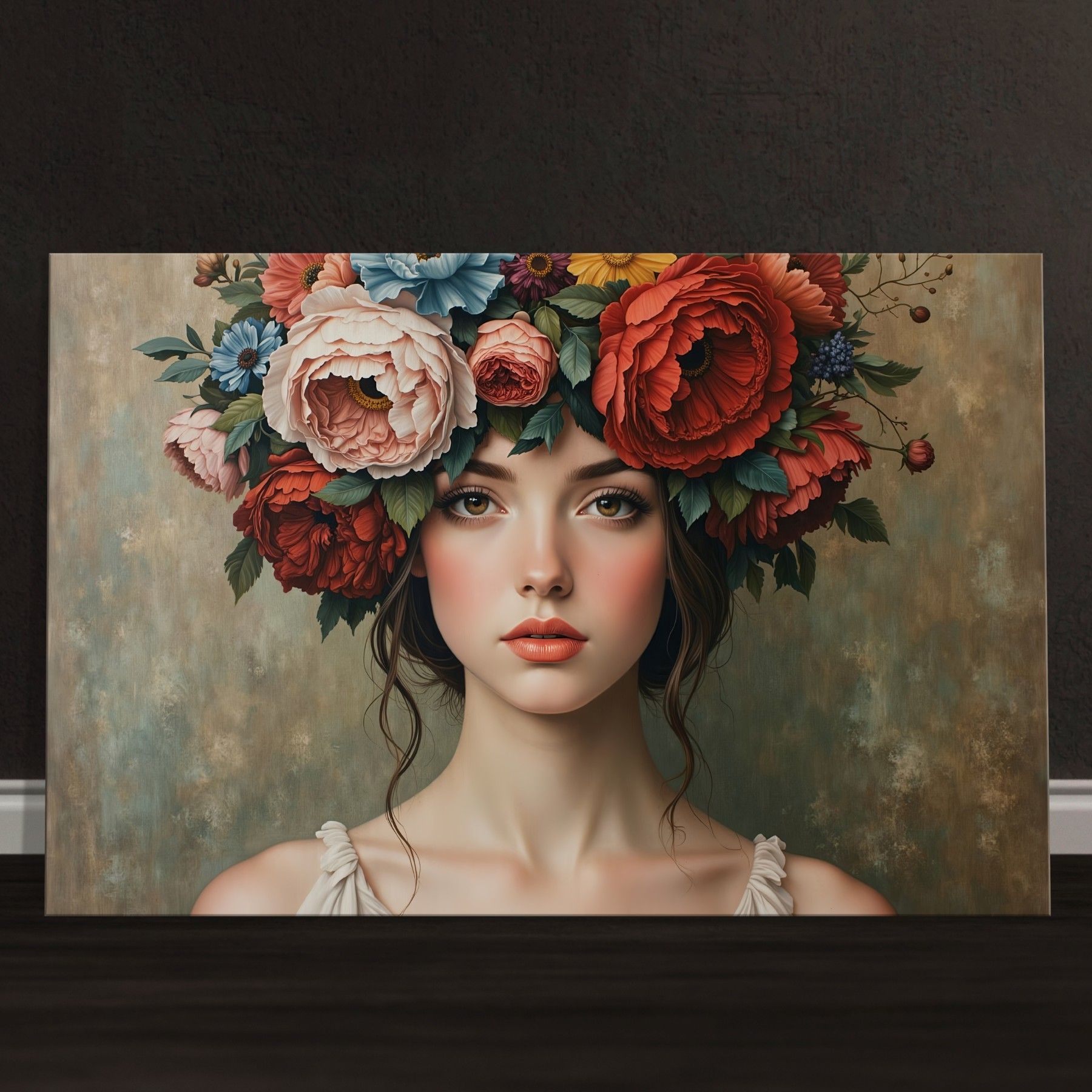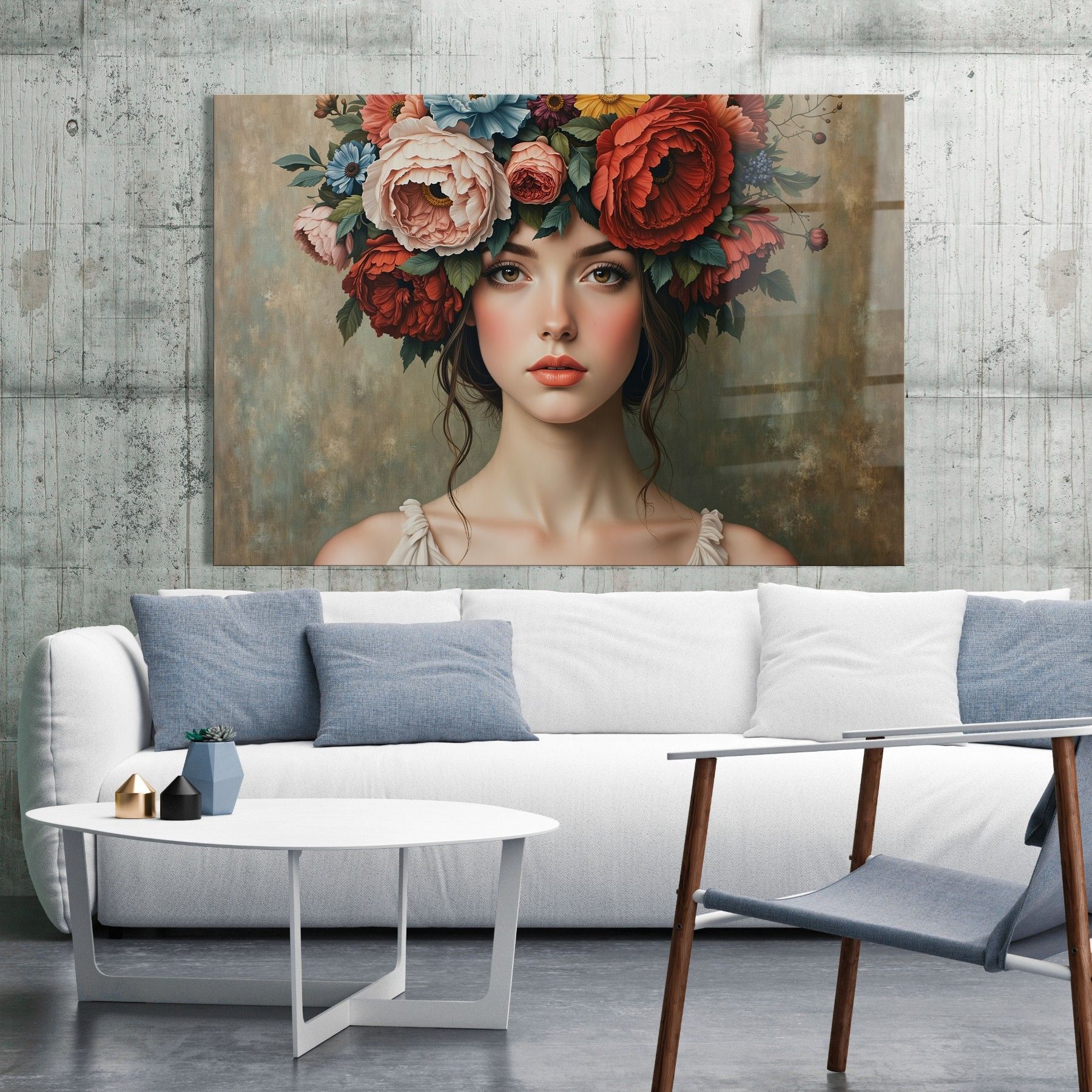 Frau mit Blumenporträt, weibliche Kunst Wandbild Leinwand, Acrylglas, Poster Nr18