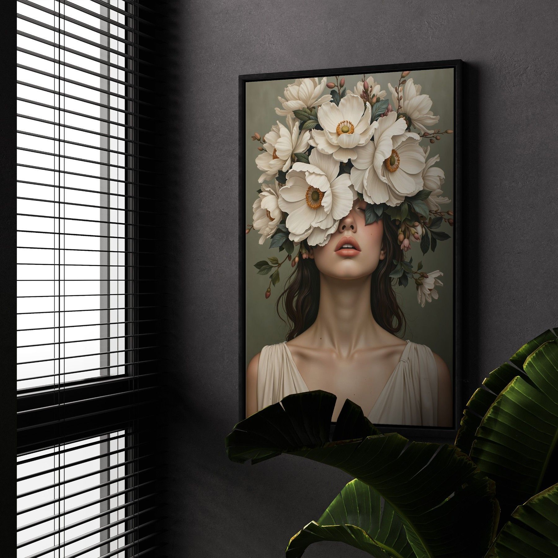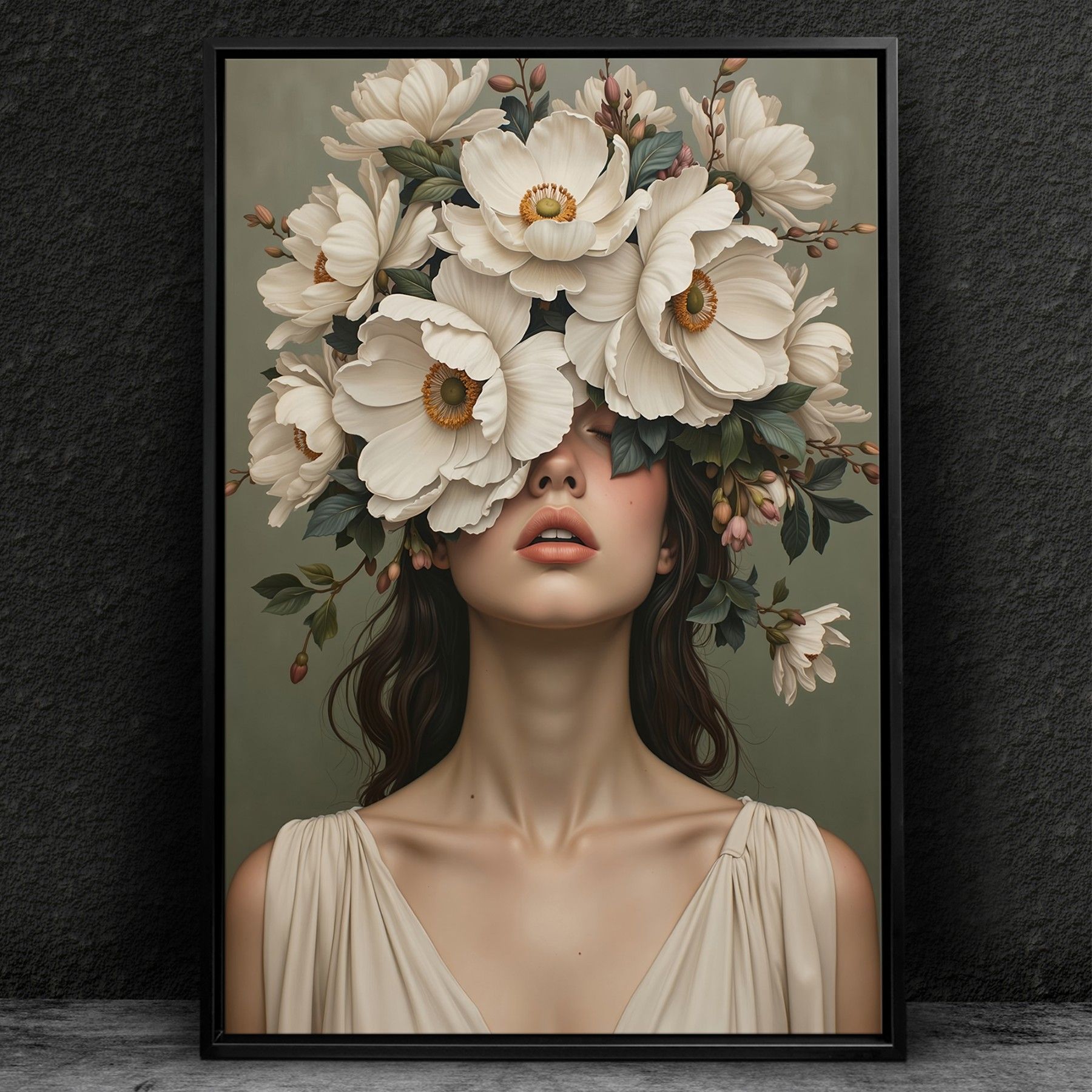 Frau mit Blumenporträt, weibliche Kunst Wandbild Leinwand, Acrylglas, Poster Nr28