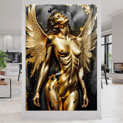 Frau mit Engelsflügeln, Erotische Gold Wandbild Kunst Leinwand, Acrylglas, Poster Nr8