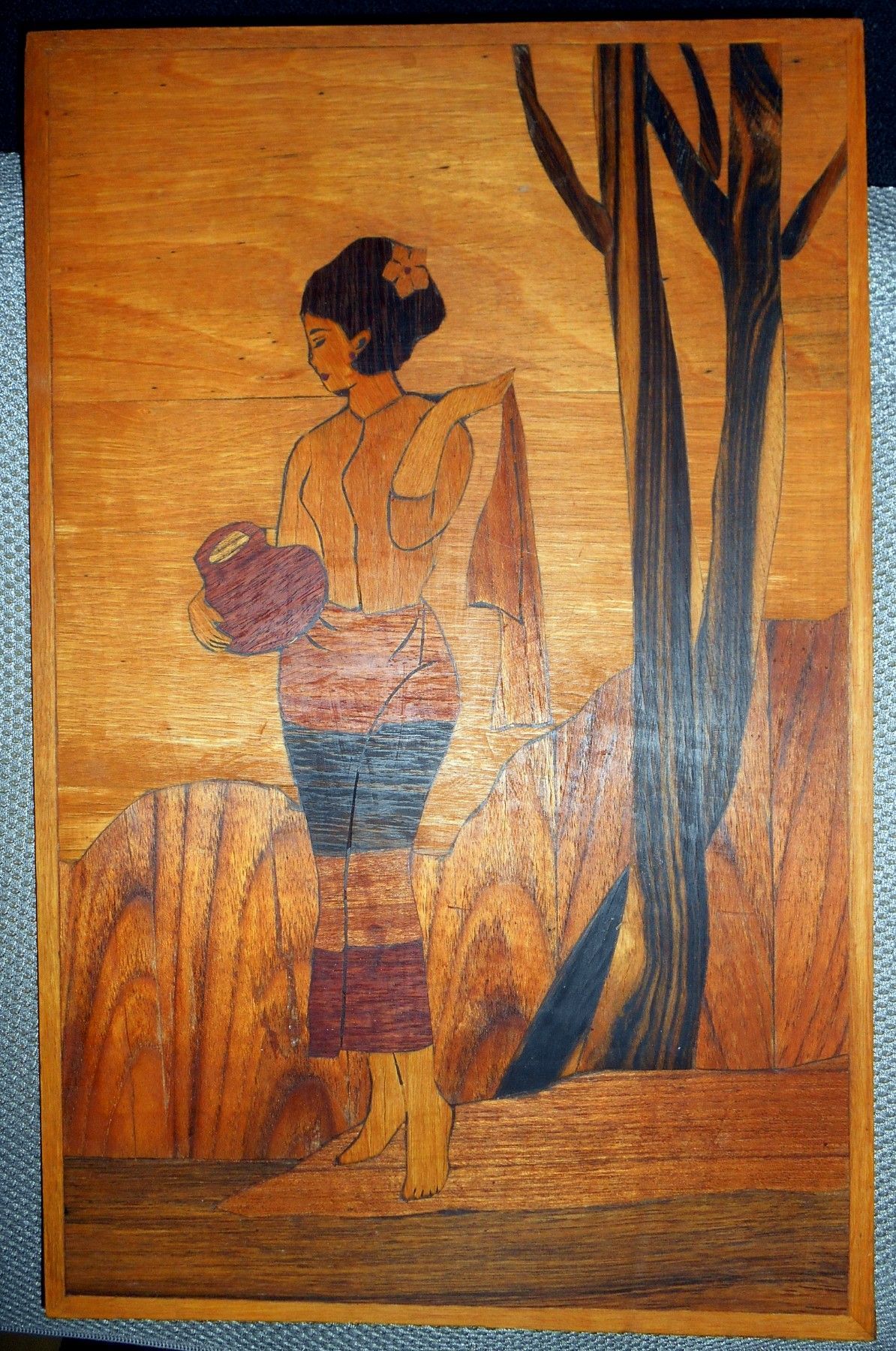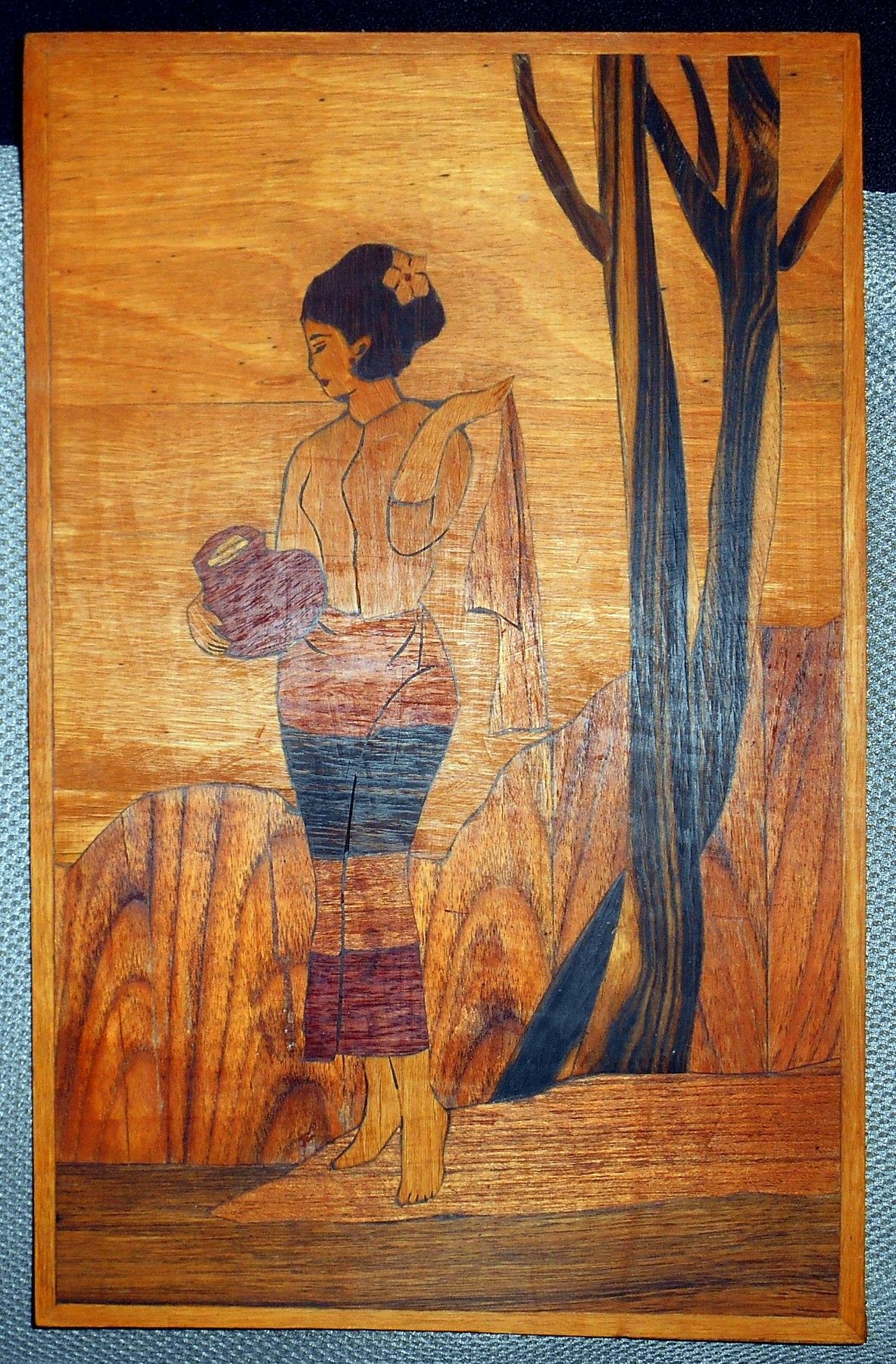 Intarsienbild aus Birma (heute Myanmar), 1960er Jahre