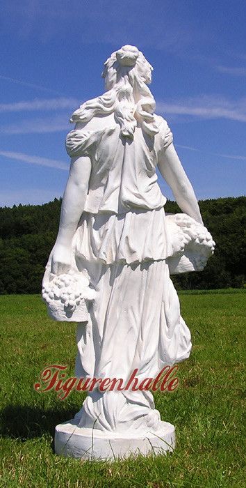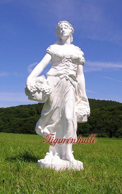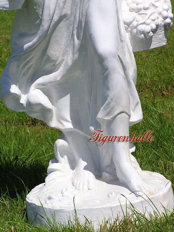 Frau Weintrauben Skulptur Deko Korb Landhausstil Figur Statue Gartenfigur weiß