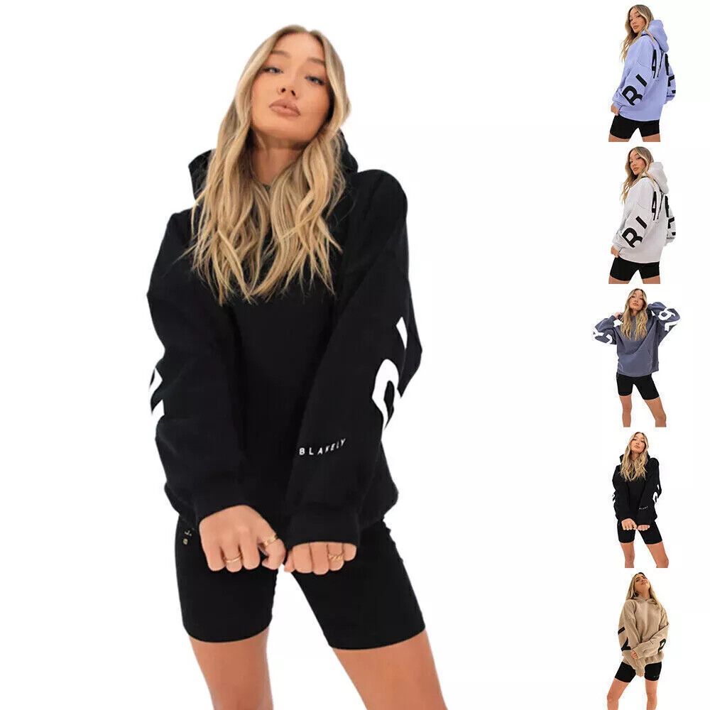 Frauen Blakey Print Hoodie Mit Kapuze Sweatshirt Pullover Lose Beilaufige Sport Tops