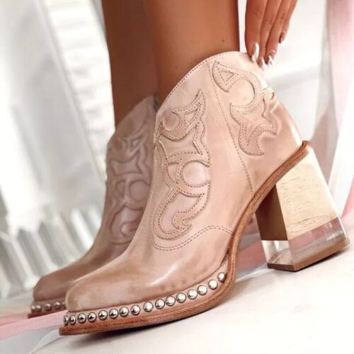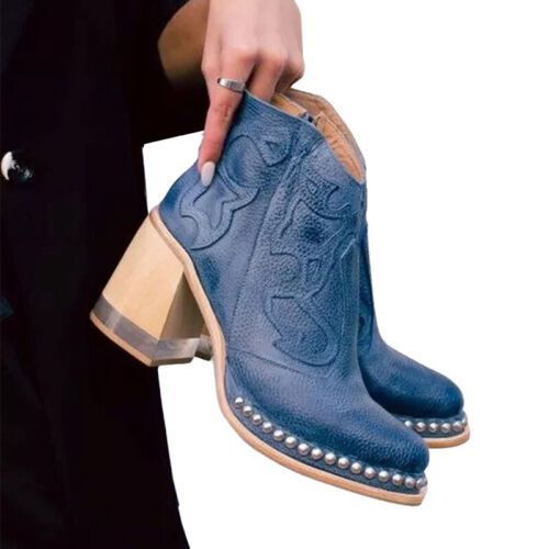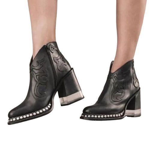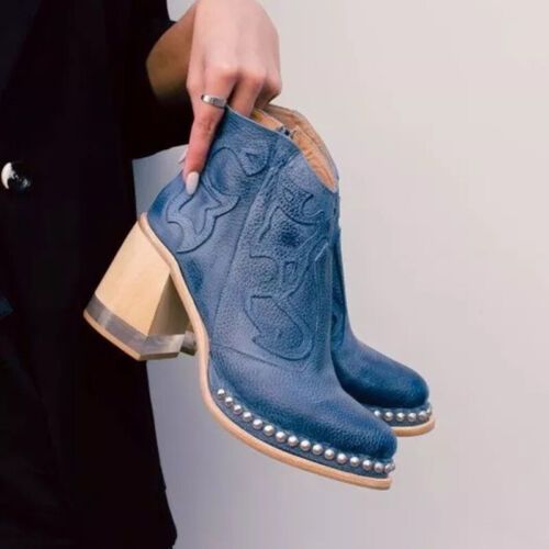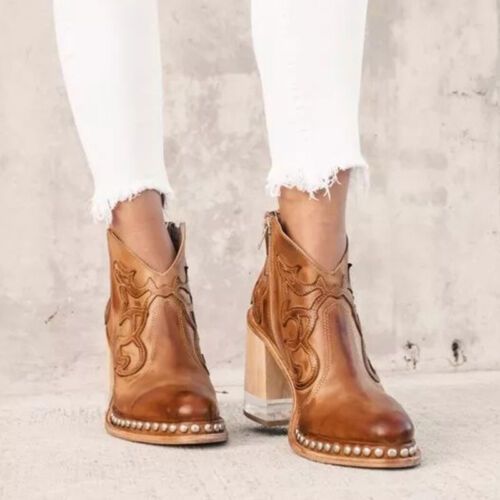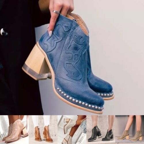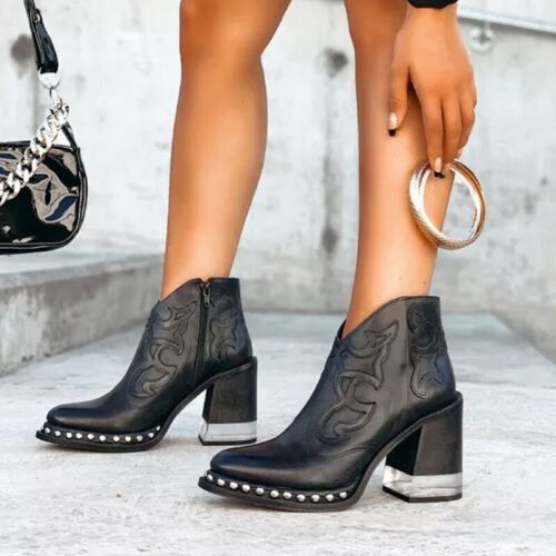 Frauen Booties Klobige Ferse Stiefeletten Damen Mode Arbeiten Seitenzip Schuhe