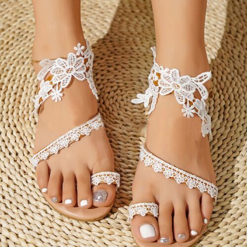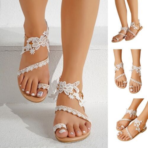 Frauen Flache Sandalen Schlupfen Bohemian Sandale Damen Fesselriemen Lassig