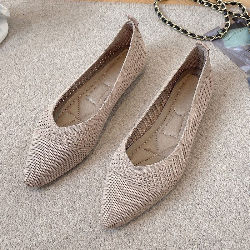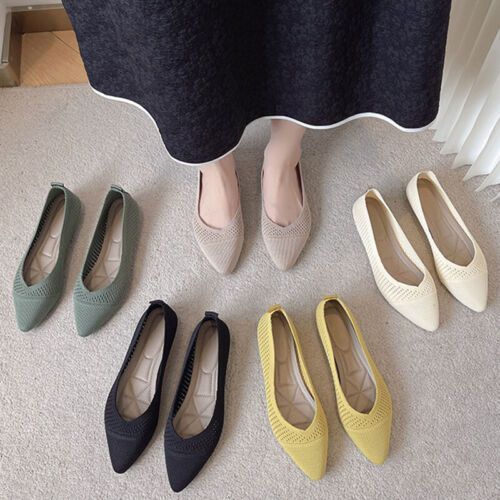 Frauen Flache Schuhe Schlupfen Wohnungen Damen Lassig Gehen Obere Stricken Pumps
