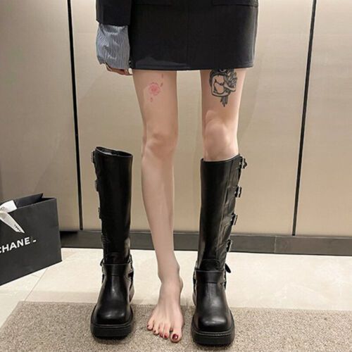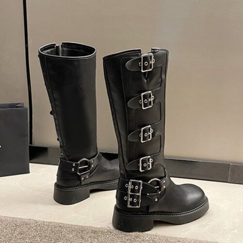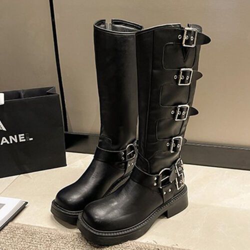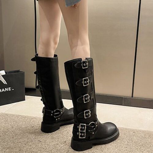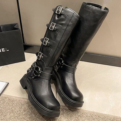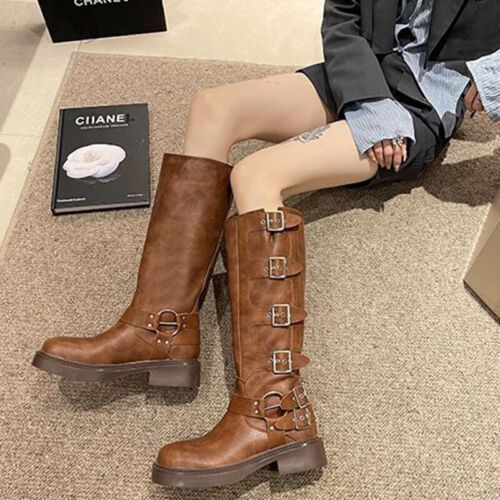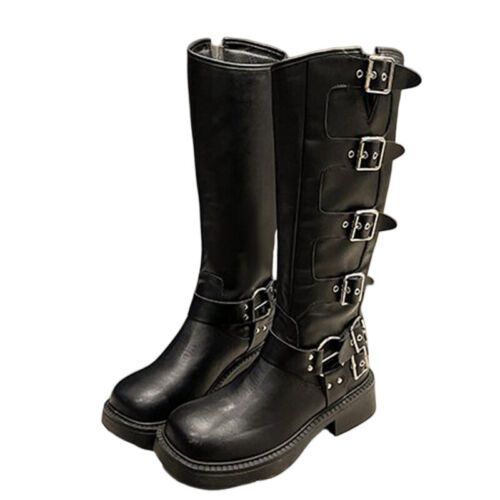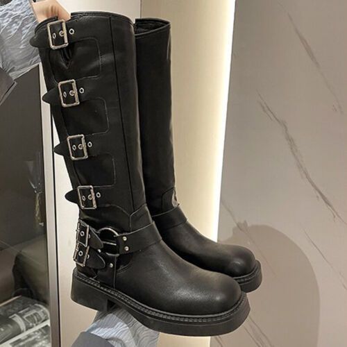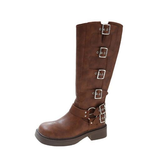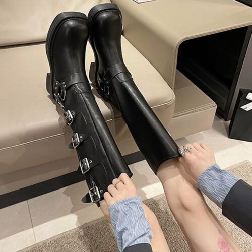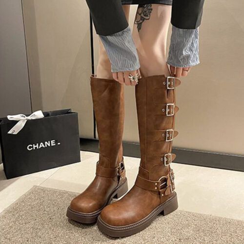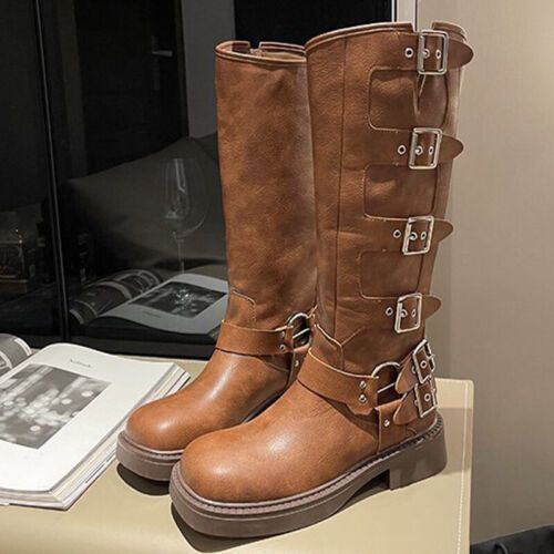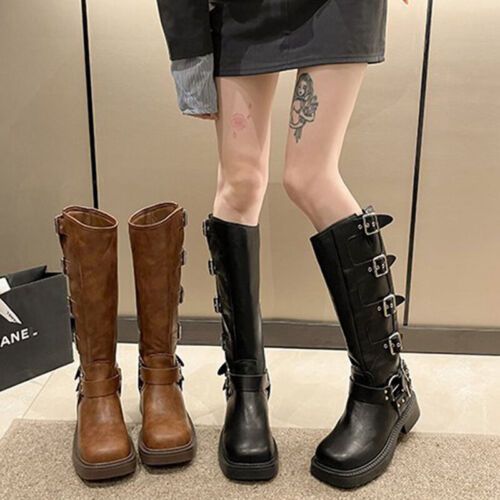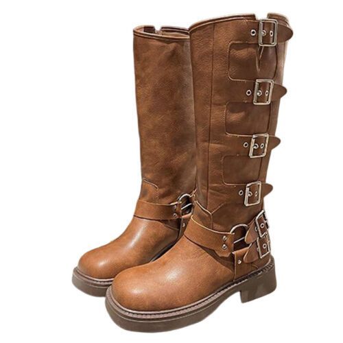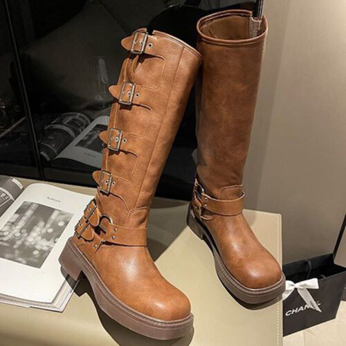 Frauen Knie Hohe Schuhe Quadratzehe Reitstiefel Damen Komfort Draussen