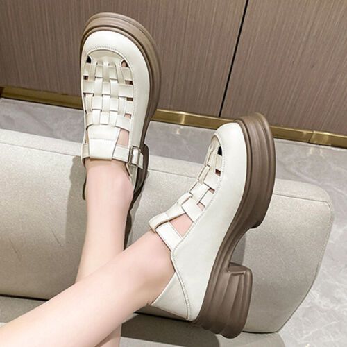 Frauen Ladung Plattform Lassige Schuhe Damen Slip Sommer Runder Zeh Lederschuh