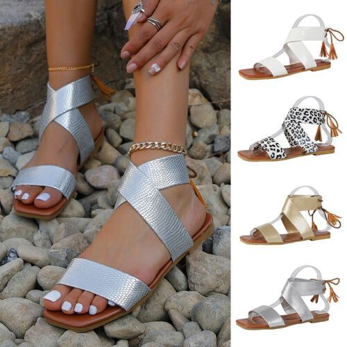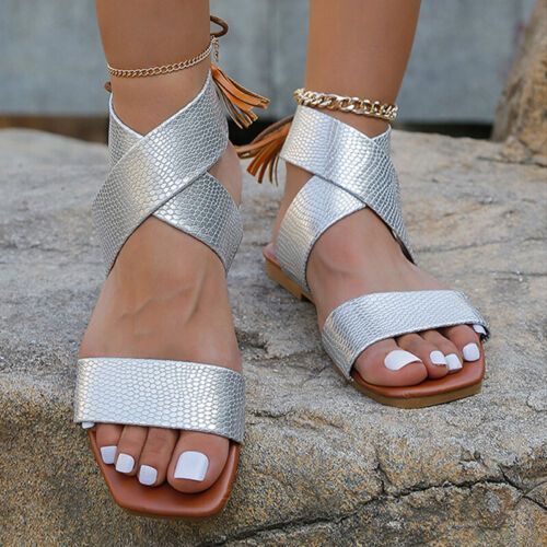 Frauen Lassige Schuhe Strand Flache Sandalen Damen Leicht Party Cross-Strap